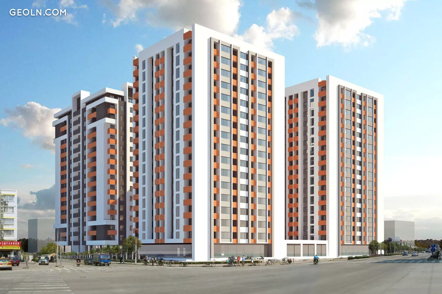 Yeni bina, her biri bir girişi olan üç on yedi katlı binadan oluşuyor. Evler tek bir yüksek teknoloji tarzında dekore edilmiş, binalar yapısal güvenilirlik ve apartmanlarda konfor seviyesi için modern gereksinimlere uygun olarak tasarlanmıştır. Binaların cepheleri parlak sıcak renklerle boyanmıştır, sundurmalar ve balkonlar camsızdır.