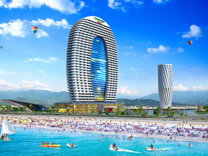cadde üzerinde LCD. Batum'daki Zhiuli Shartava, 30, Yeni Bulvar yakınında, deniz kıyısına 1300 metre mesafede inşa ediliyor. Orta katlı evler çoğunlukla mahallede yoğunlaşmıştır. Bu bölgede büyük sanayi kuruluşu yoktur, yeni binanın yanından yoğun bir otoyol geçmektedir. Argo teleferiği ve Batum Deniz Limanı yaklaşık 3,5 km uzaklıktadır.