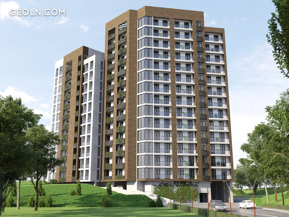 Mega Didube konut kompleksi, konforlu daireler ile dört modern bina sunan büyük ölçekli bir projedir.