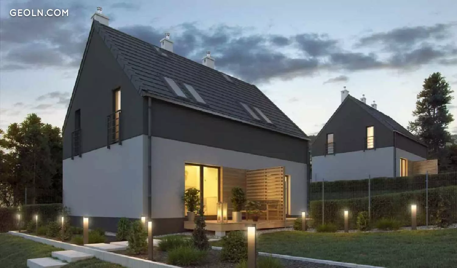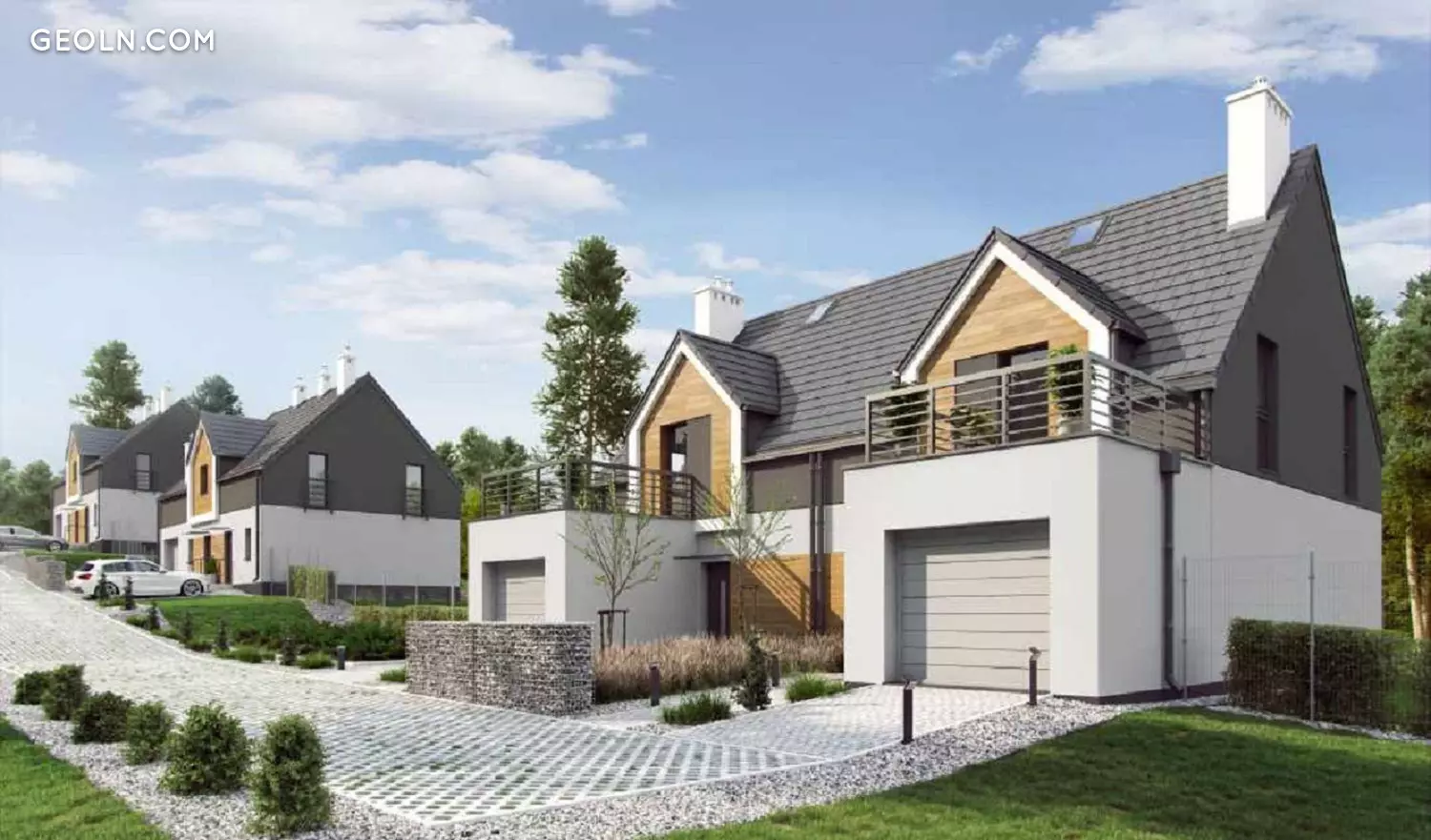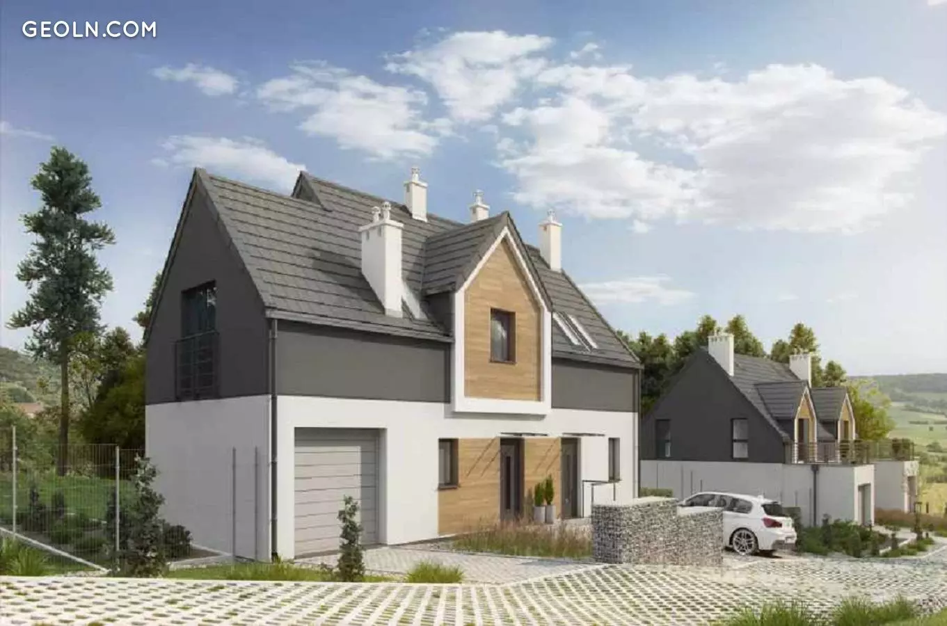 Evler tek katlı, geleneksel bir düzende inşa edilmiş, fayanslarla kaplı eğimli çatılar ve basit bir mimari gövde ile. Yükseklikler beyaz ve gri renkler, ahşap dekoratif elemanlar, çatı pencereleri, zemin katta sürgülü cam kapılar ve ön kısımda çelik korkuluklarla çitle çevrili teraslar ile sıvalarla tamamlandı.