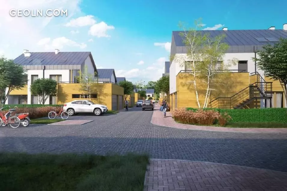 Samimi, tek katlı, yatay yönelimli evler minimalist, modern bir tarzda inşa edildi. Tavan pencereli eğimli çatılar yapıldı, yükseltiler beyaz ve ahşabın tonlarının renk kombinasyonunda tutuldu. Cam balkon ve teras korkulukları eklendi.