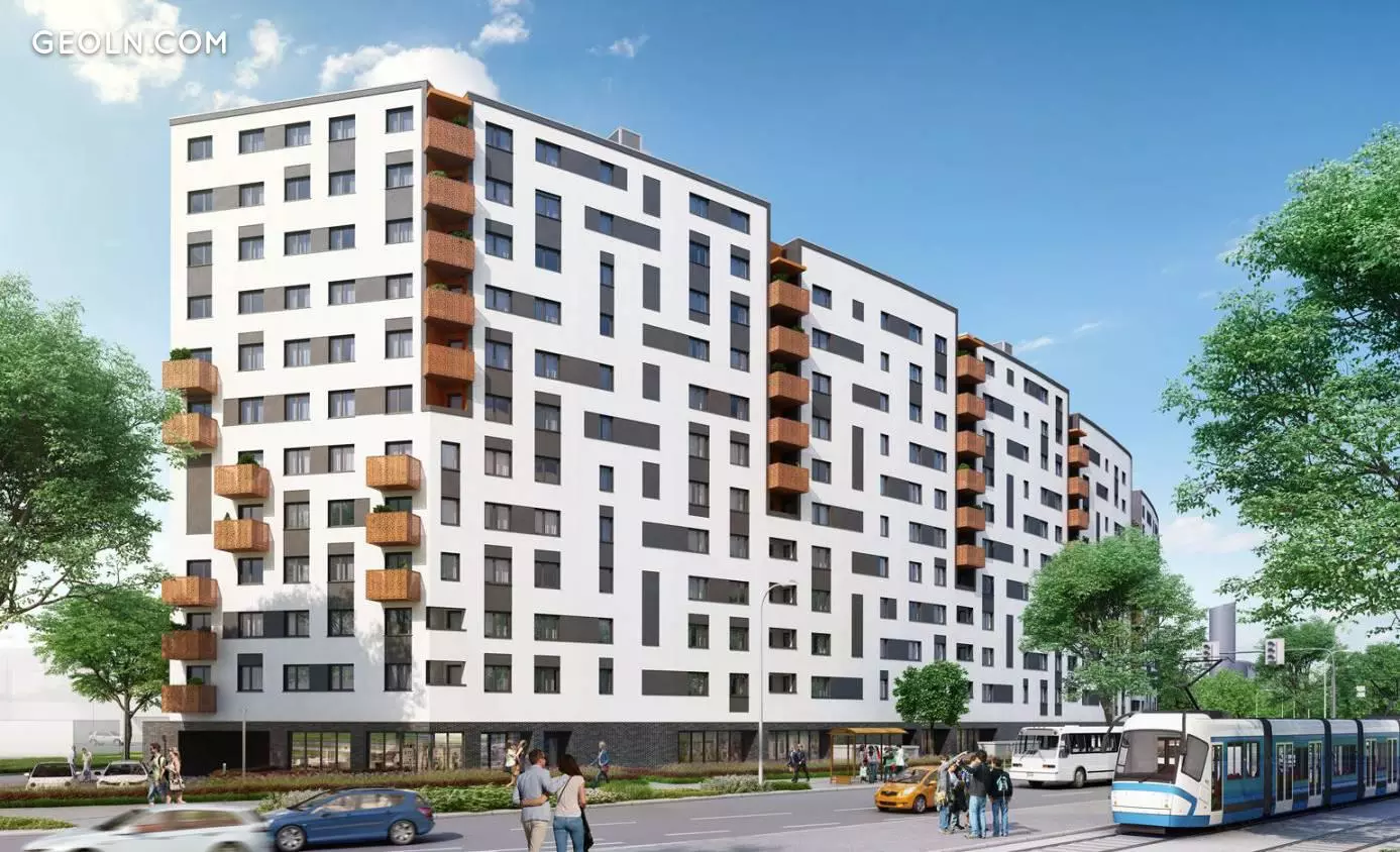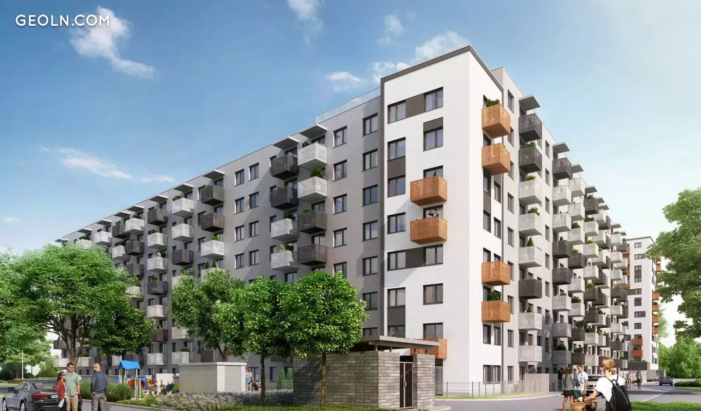 Yatırım amaçlı binalar modern bir tarzda inşa edilmiştir. Cephe açık tonlarda tutuldu, zıt renk unsurları eklendi.