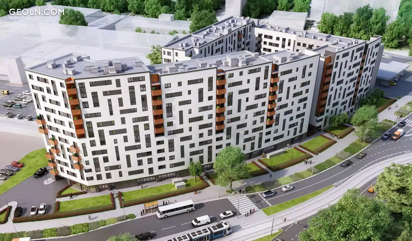 Wrocław'daki Kamienna 145 arazisi aşamalı olarak uygulanmaktadır ve on iki katlı yüksekliğe sahip iki modern binadan oluşan bir kompleks içermektedir.