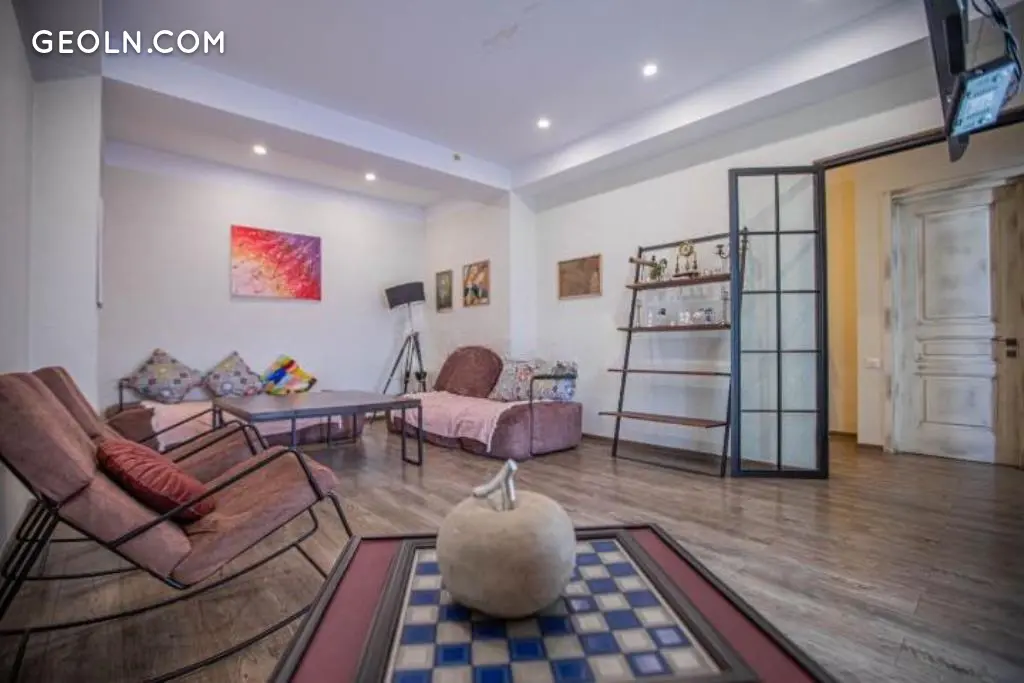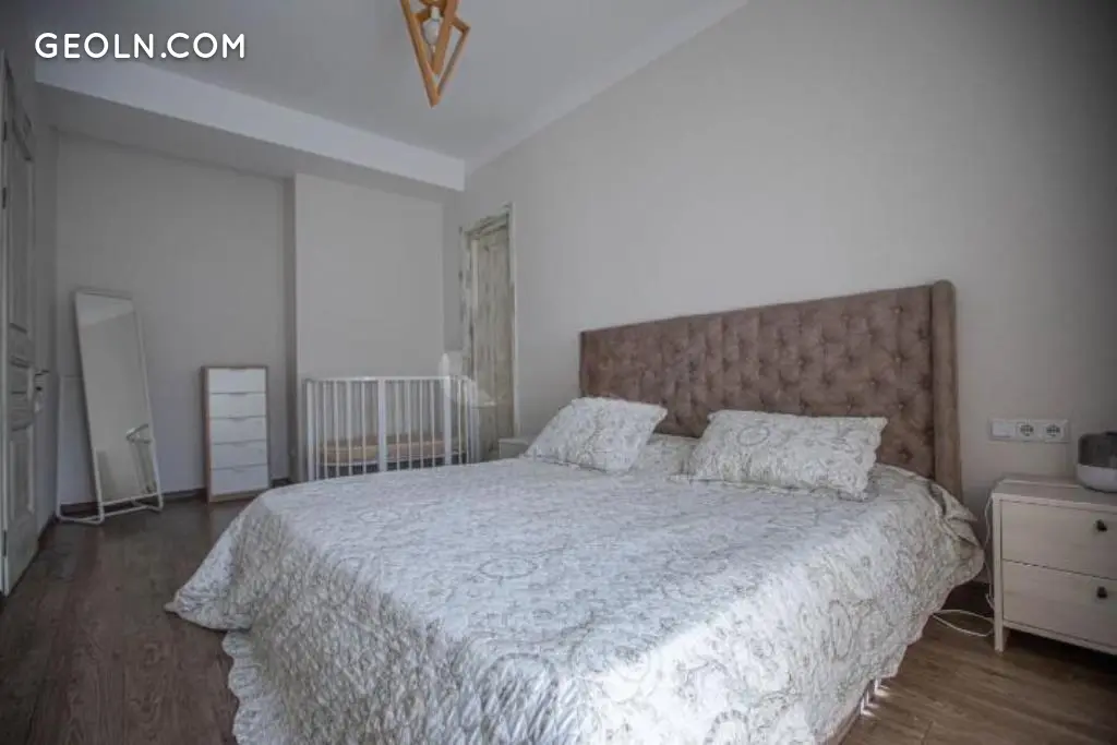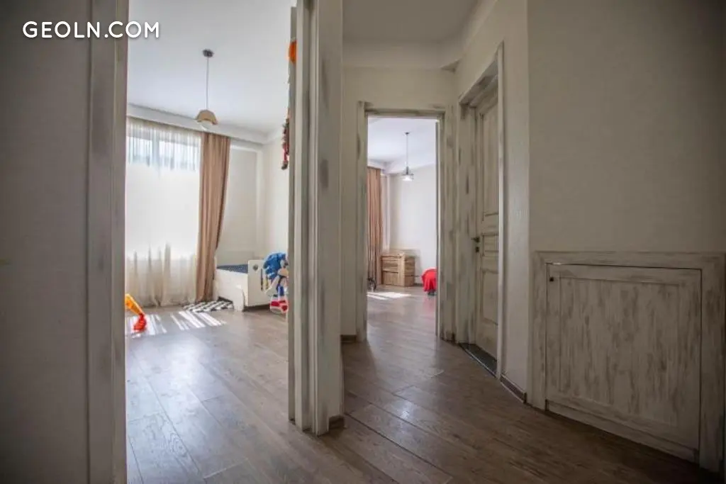 Satılık 5 odalı yeni tadilat yapılmış daire, Saburtalo'da Bakhtirioni caddesinde, yeni inşa edilmiş binada, alanı 136 m², 17. (18.) kat, 3 yatak odası, merkezi ısıtma, mobilyalı ve ekipmanlı, 2 banyo, klima