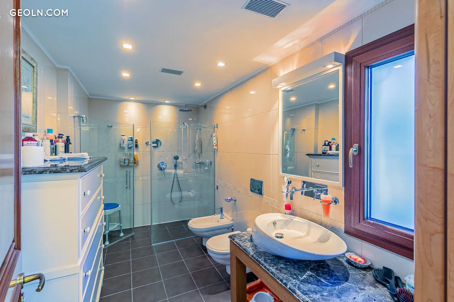 İki katlı ve spor salonu, sinema ve şarap mahzeni bulunan bodrum katı.