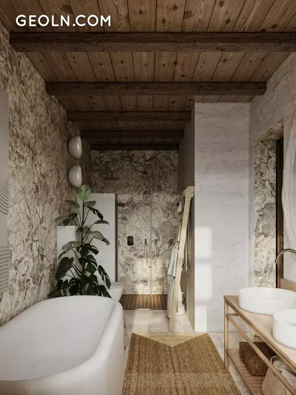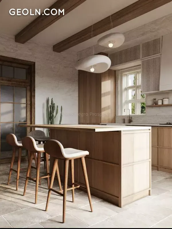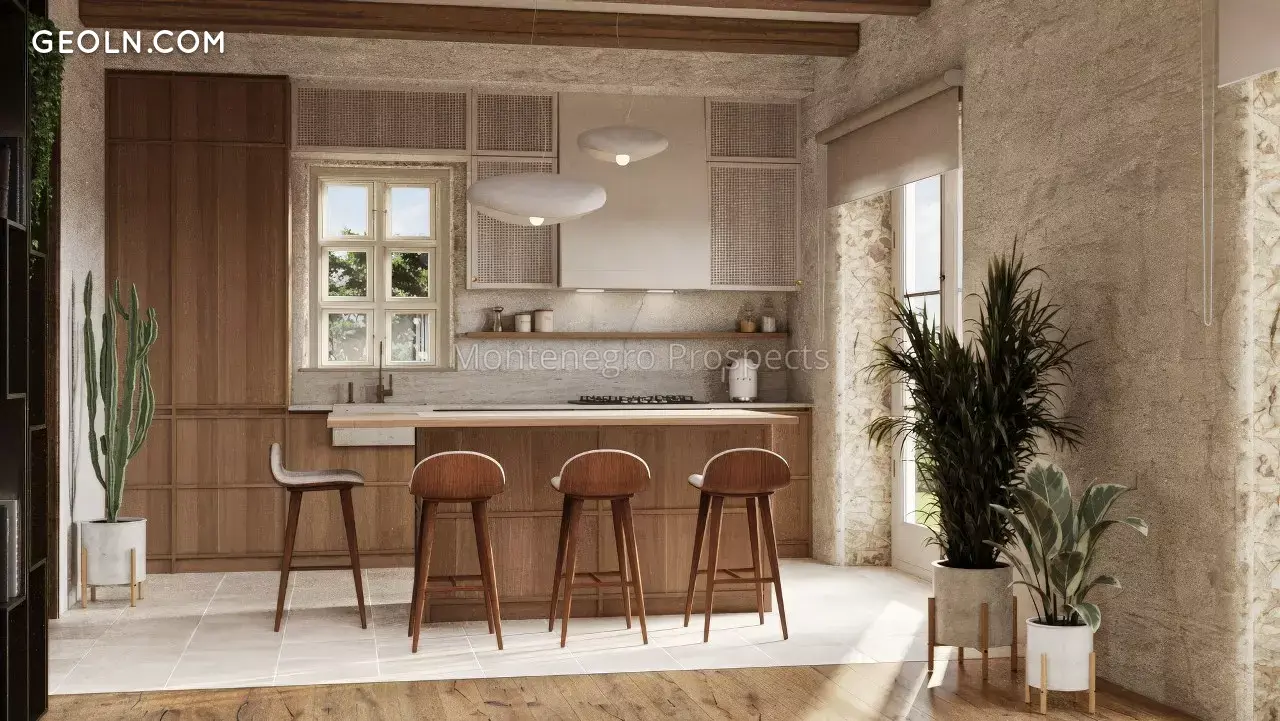 Проект включает первый этаж с просторной гостиной, кухней и столовой, а на втором этаже предусмотрены три спальни, каждая с собственной ванной комнатой. Участок ориентирован на запад и предлагает частичный вид на море.