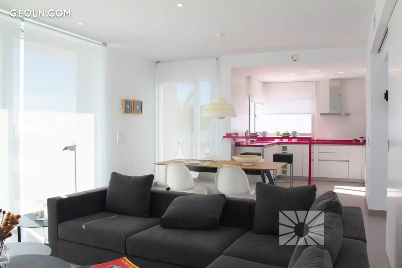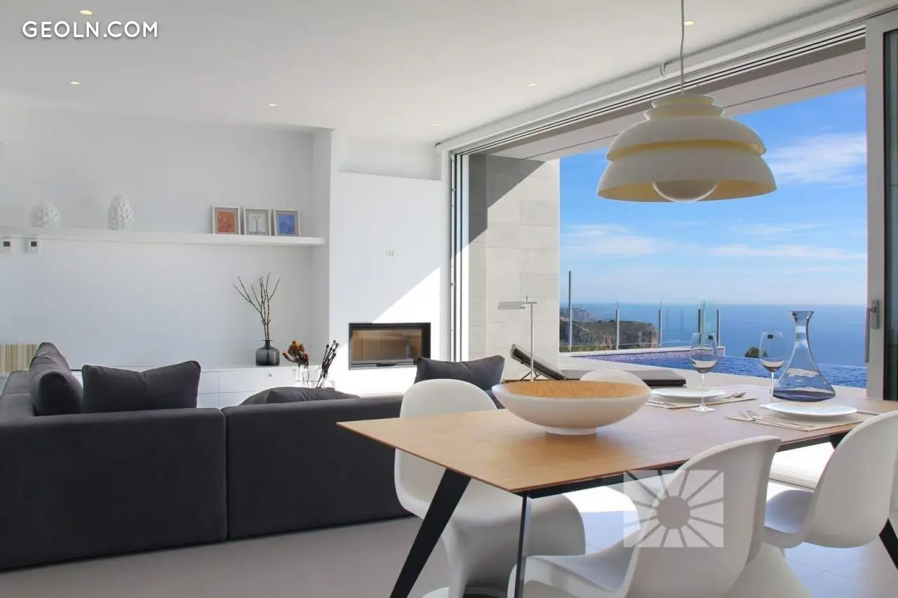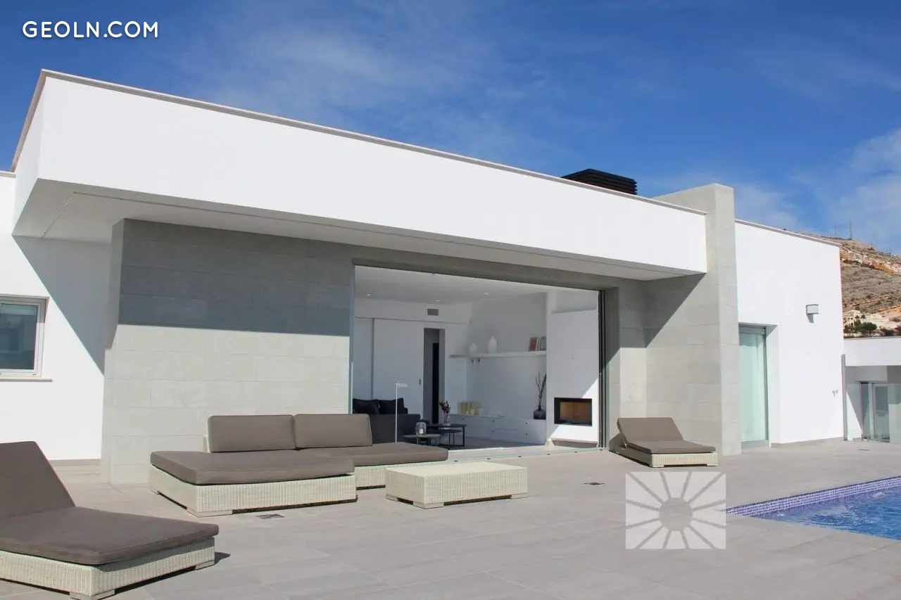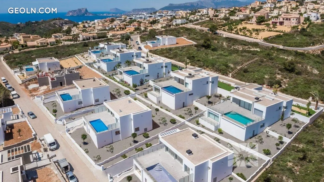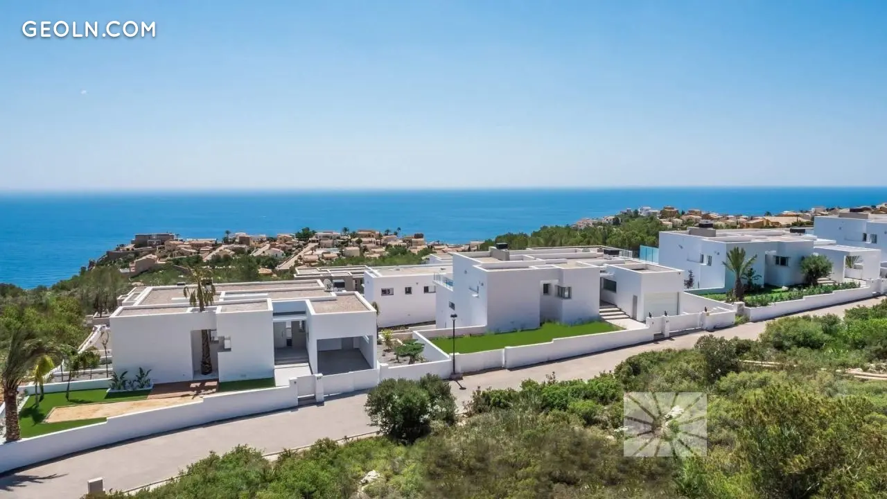 Cumbre del Sol, Beni'de çağdaş bir cephe tasarımı, düz çizgilerin, korunan alanları oluşturan çıkıntılı bölümleri olan düz çatıların, büyük pencerelerin ve taşla dekore edilmiş beyaz duvarların birleşimidir.Quichel, Javea ve Moraira arasında, Costa Blanca Kuzey.