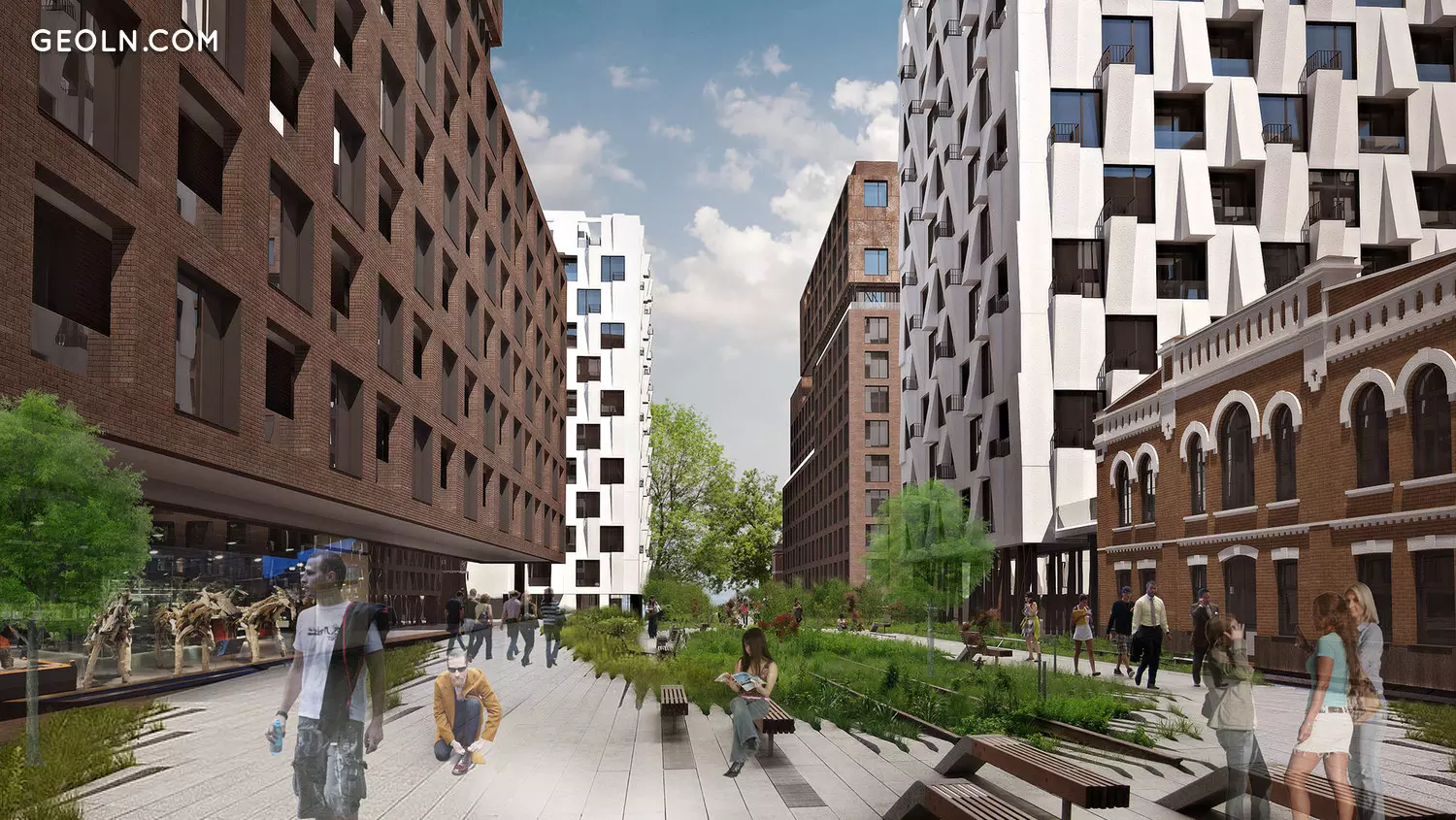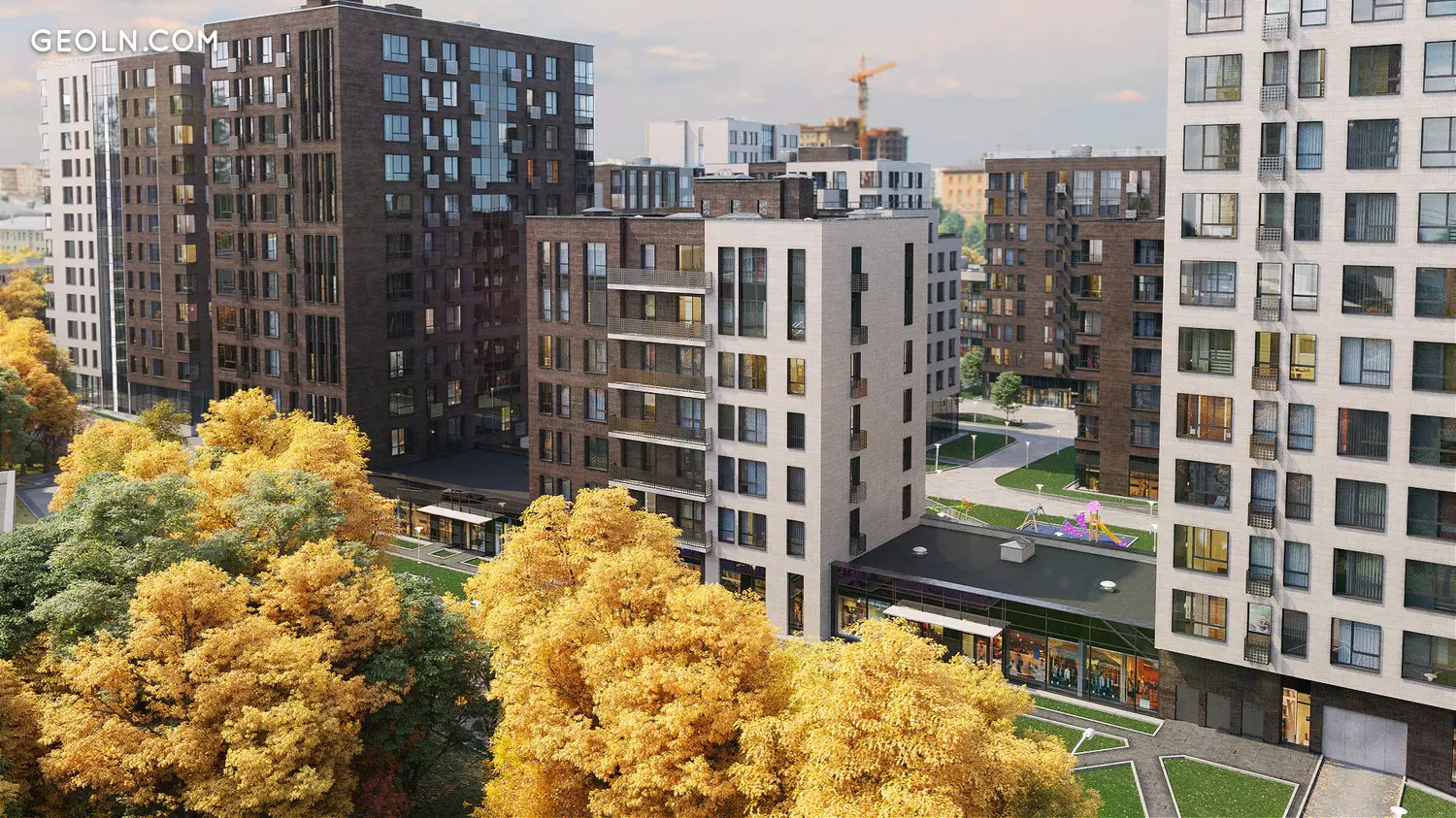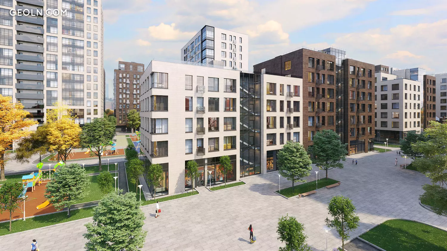 Avlu bölgesi, yeşil alanlar ve küçük mimari formlarla süslenmiş spor ve oyun alanları, bisiklet ve yürüyüş yolları, banklar ile donatılmıştır. Bölge yabancılara açıktır, ancak bölge sakinlerinin güvenliği için 24 saat video gözetimi altındadır. Yeraltı otoparkı 1.771 araba için tasarlanmıştır, misafir park yerleri mevcuttur.