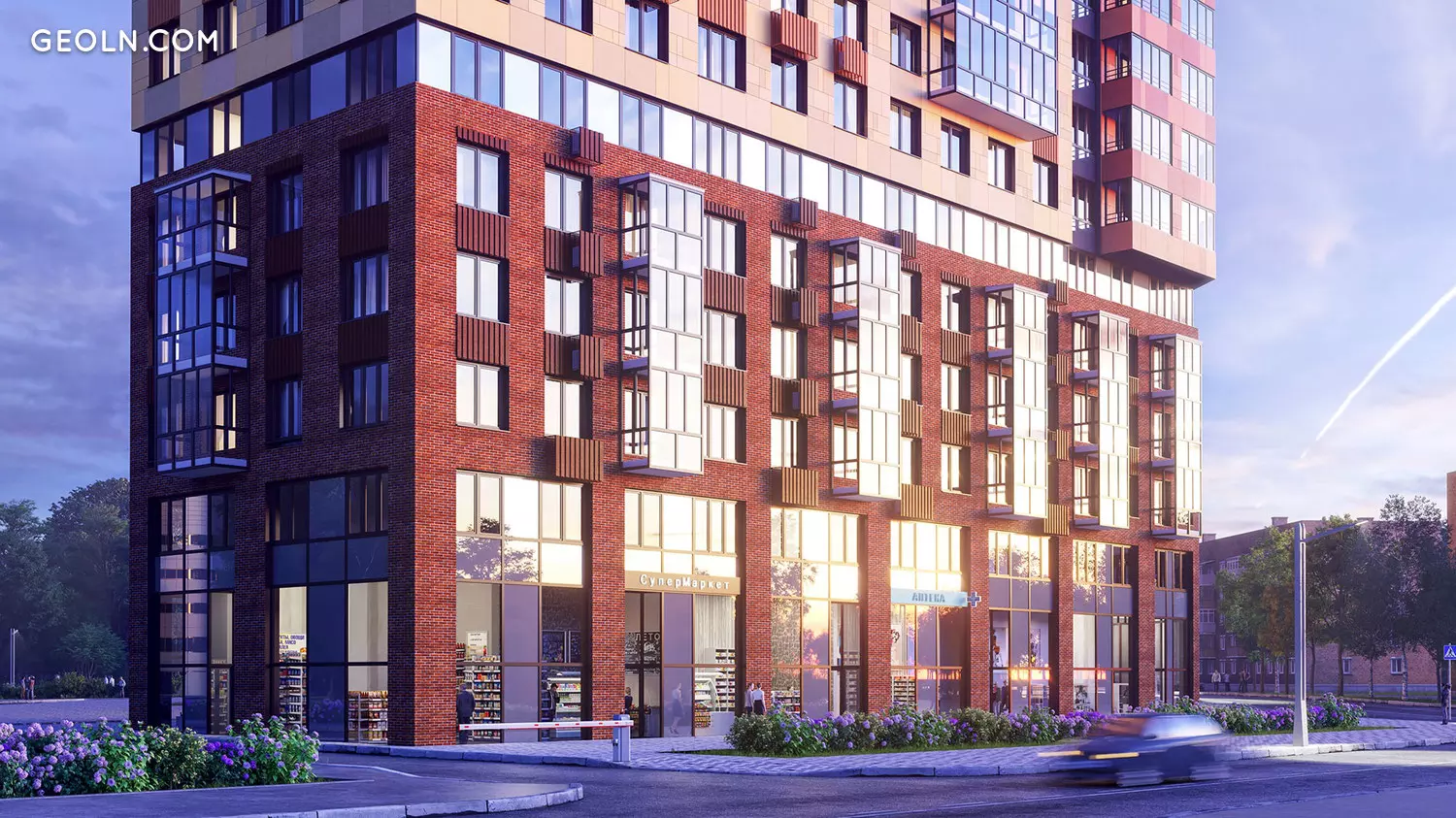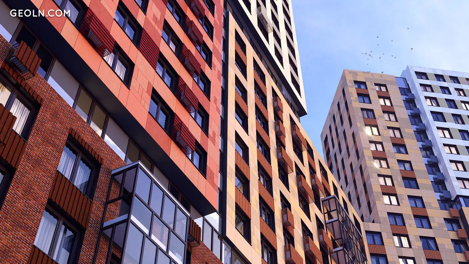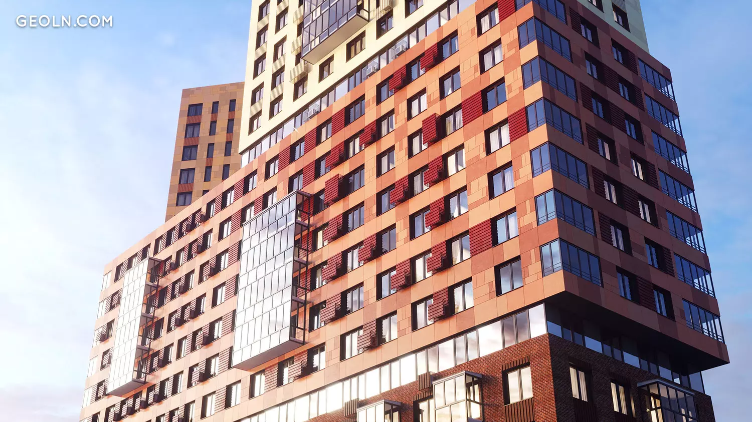 Las aberturas de las ventanas son de gran tamaño, las ventanas están acristaladas con ventanas de doble acristalamiento que ahorran energía. Algunos de los apartamentos cuentan con amplios balcones con vidrieras, que también sirven como función decorativa, amenizando el aspecto del nuevo edificio. En las paredes exteriores, se proporcionan cestas especiales, en las que los propietarios de apartamentos pueden instalar posteriormente acondicionadores de aire individuales.