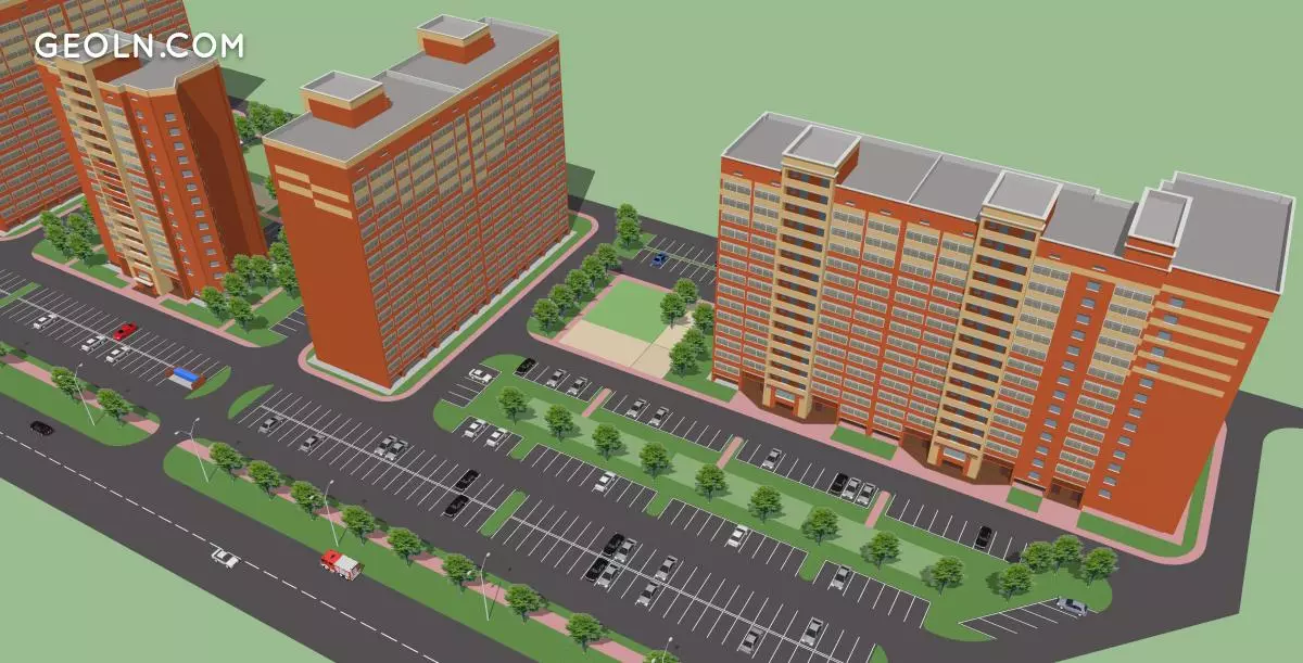 Geliştirme planı, konuk otoparklarının ekipmanını, garaj yolları ve sert yüzeye sahip kaldırım cihazlarını sağlar. Çocuk oyun alanları, spor ve rekreasyon alanları donatılıyor. Ağaçlar ve çalılar dikilir, aydınlatma armatürlü direkler yerleştirilir.