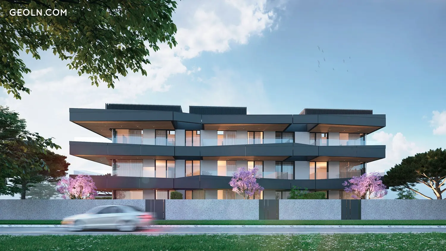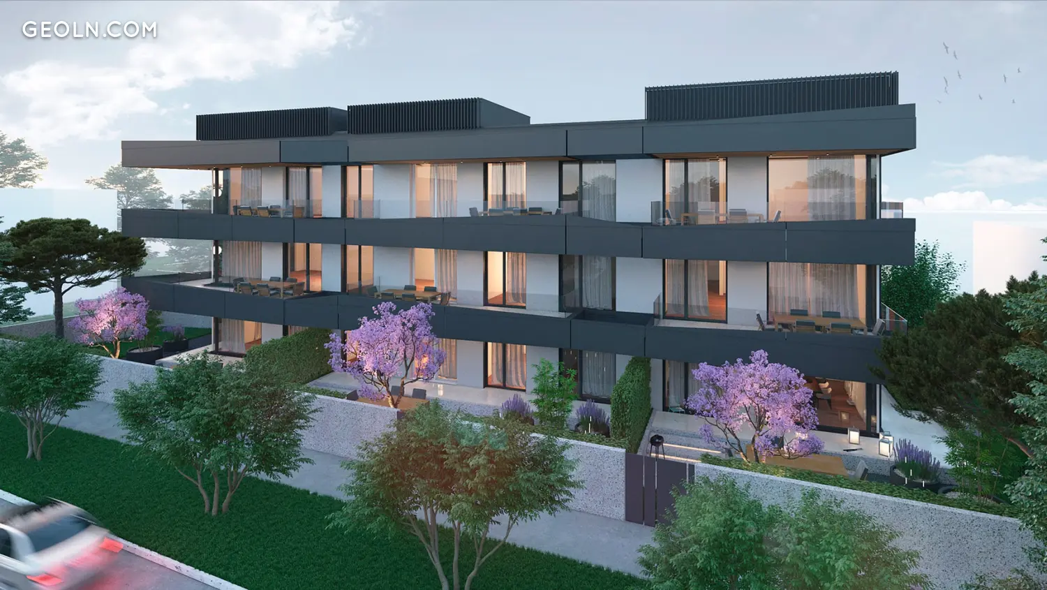 Atriyumlar zemin seviyesinden 1 metre yükseltilecektir. Çevresine 1,8 metre yüksekliğinde bir çit çekilecek, bu da büyük ölçüde mahremiyet sağlayacak. Binanın arkasında harika bir çocuk oyun alanı bulunacaktır. Dış yüzeylerin bahçe mobilyaları ve maun kaplamaları binanın dış mükemmelliğine katkı sağlayacaktır.