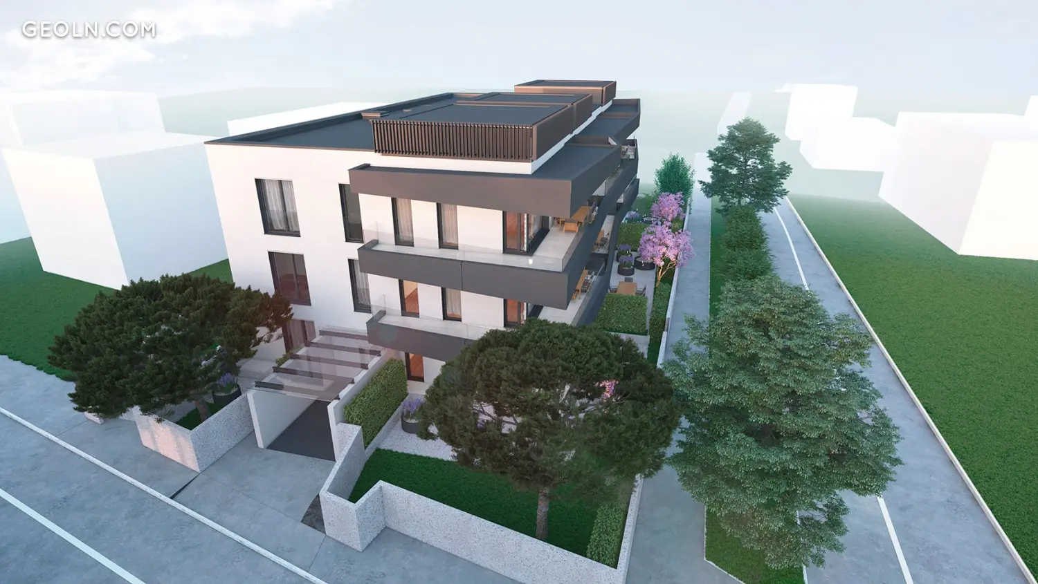 Zemin kat büyük ve tasarımcı tasarımlı atriyumlarla karakterize edilecek, diğer iki kat ise 2,8 m genişliğinde teraslara sahip olacak. Uyku alanları yaşam alanlarından ayrılacaktır. Tüm daireler güneye bakacak ve Ljubljana Kalesi ile Kırım'ın güzel manzaralarını sunacaktır.