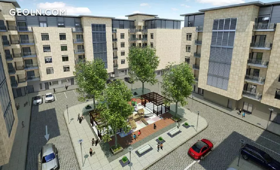 Згідно з планом забудови виділена під будівництво ділянку площею близько 1 га на 60% зайнятий внутрішнім двором. Тут висаджено дерева, обладнаний фонтан, передбачена дитяча ігрова зона і місця для відпочинку. За чистотою, порядком, а також справністю всіх об'єктів життєдіяльності будівлі стежить власна експлуатуюча компанія.