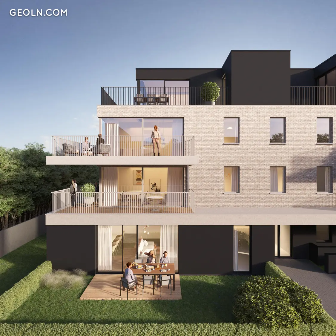 І чи спокусить вас Residence Cipriano! Він здивує вас своєю теплою архітектурою з облицювальної цегли м’яких кольорів і чорної фасадної штукатурки. Вона обіймає вас своїми просторими житловими приміщеннями, які заливаються світлом. Вона дозволяє вам повністю насолоджуватися її залитими сонцем терасами і дарує вам чудові ночі в блаженному спокої її спалень. Вони розташовані в задній частині, як і пагорби Фламандських Арденн, які ви можете побачити на відстані з другого поверху.