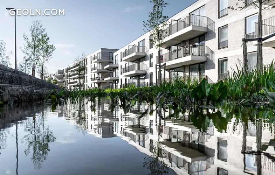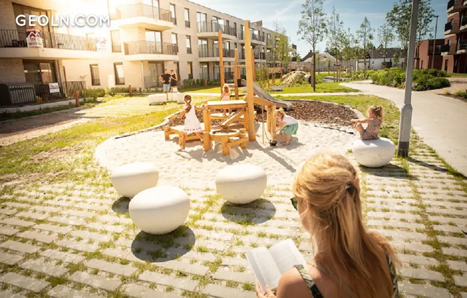 Тут ми справедливо говоримо про сталий розвиток: від занедбаного промислового майданчика до якісного нового житлового району із зеленим мікрорайонним парком. У житловому районі без автомобілів дуже раді мандрівникам і велосипедистам. Крім того, кожен може сповна насолоджуватися загальною відкритою зоною, фруктовим садом із полем для петанку, ігровими зонами для (внуків), водяними ліжками та оригінальними кріслами.