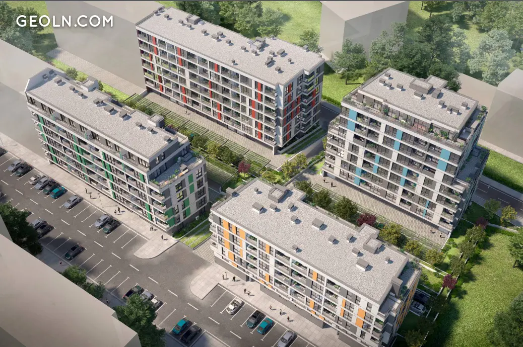 Комплекс буде умовно розділений на дві черги, по дві будівлі в кожній. Ми плануємо розпочати справжню будівельну діяльність у жовтні 2019 року, а запланований період будівництва - 24 місяці. У кожній будівлі є підвали, гаражі, підземні та надземні стоянки.