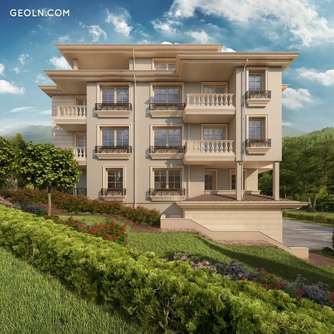 Комплекс розташований на земельній ділянці площею 1522 квадратних метри, з яких забудована площа становить лише 355,21 квадратних метрів, що визначає більшу частину майна для озеленення, перетворюючи його на зелене та приємне місце для щоденний відпочинок. Будівництво низьке, і будівля розвинена на 5 рівнях. Загальна кількість квартир у комплексі - 15, з них 3. чотирикімнатний; 8шт. двокімнатний та 4 шт. одна спальня. Кожна з квартир має окремий підвал, розташований у підвалі. Загалом передбачено 20 місць для паркування та стоянки, 9 з яких - підземні гаражні камери, а решта 11 - це відкриті місця для паркування, розташовані на території власності.