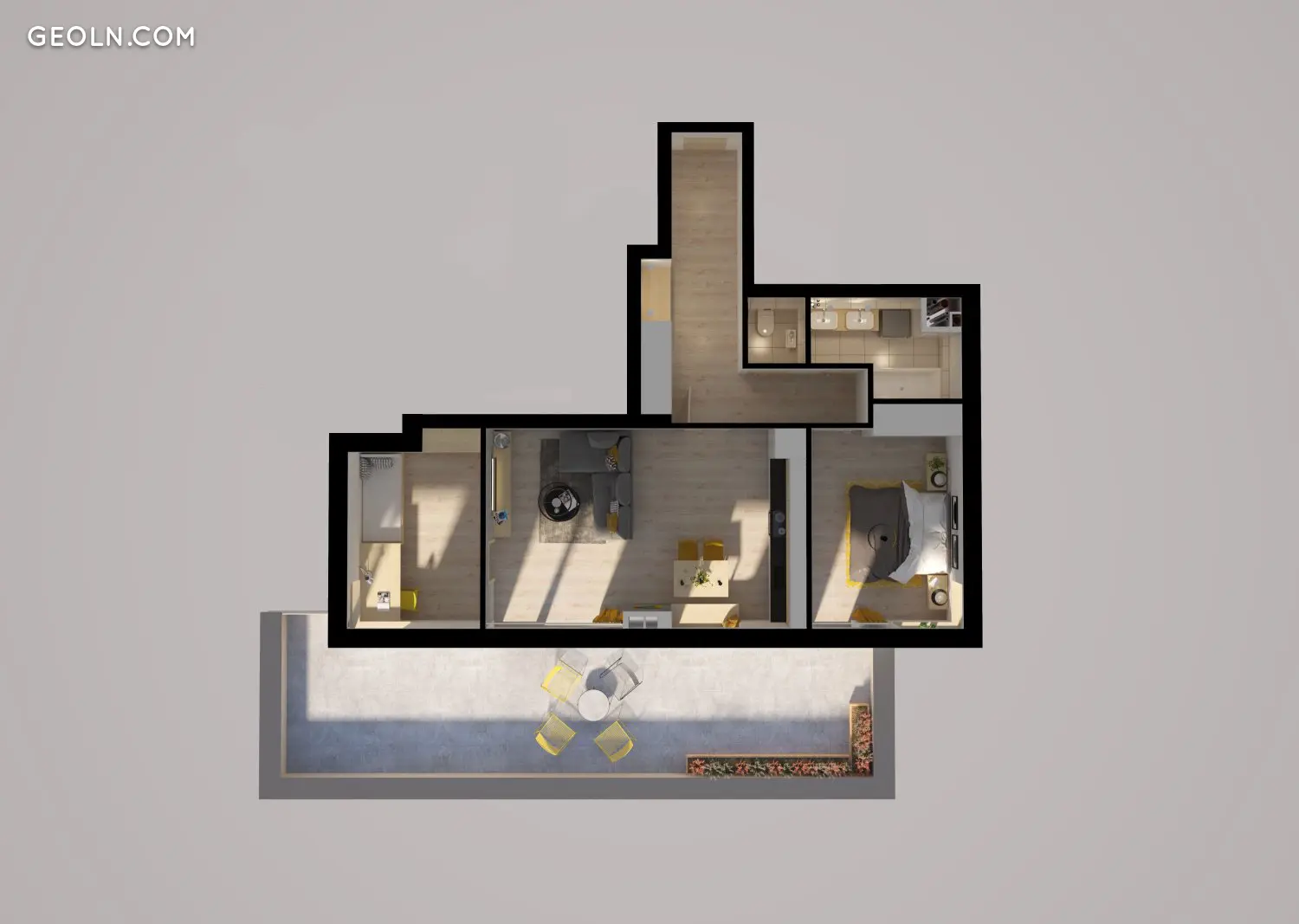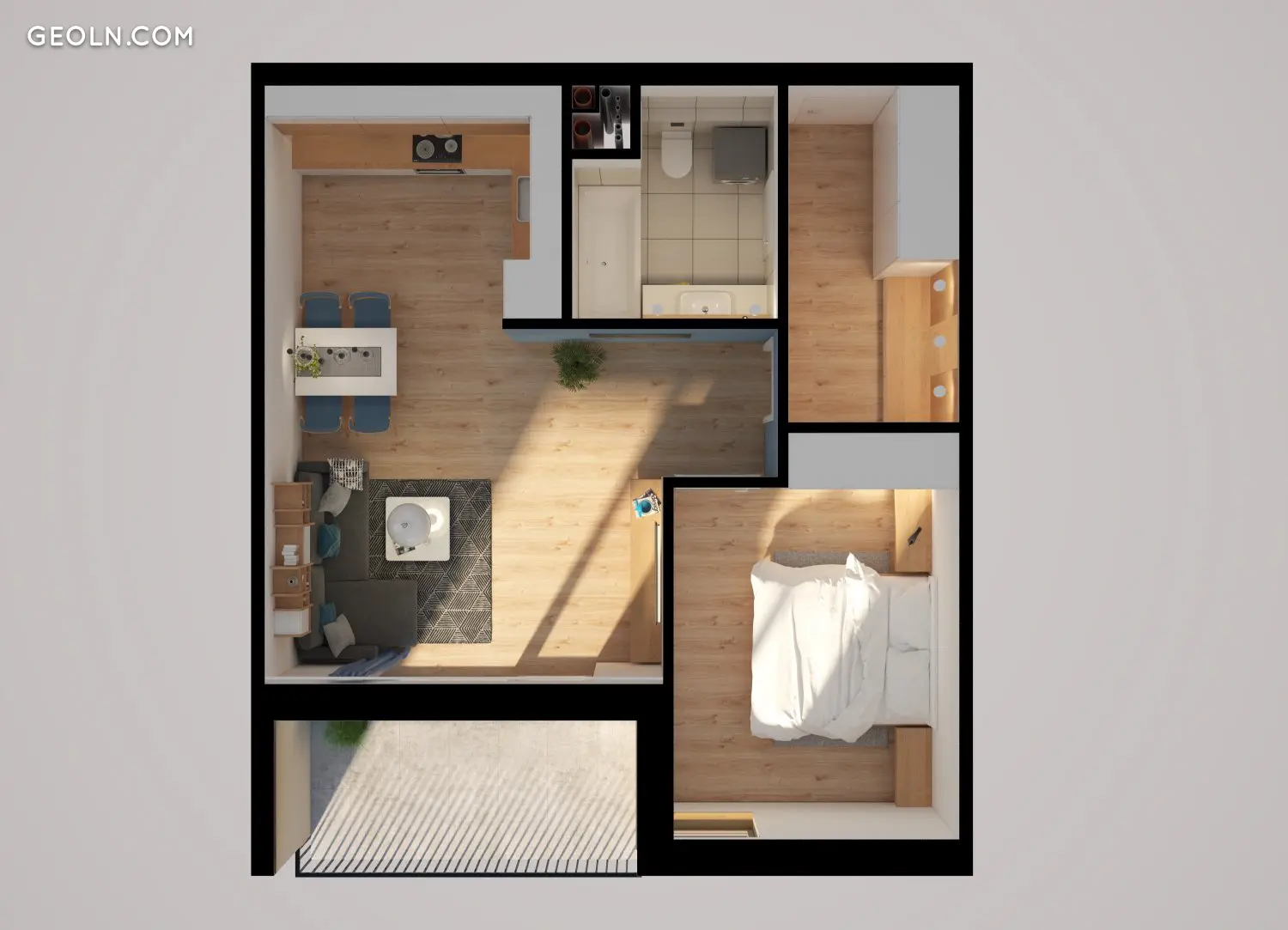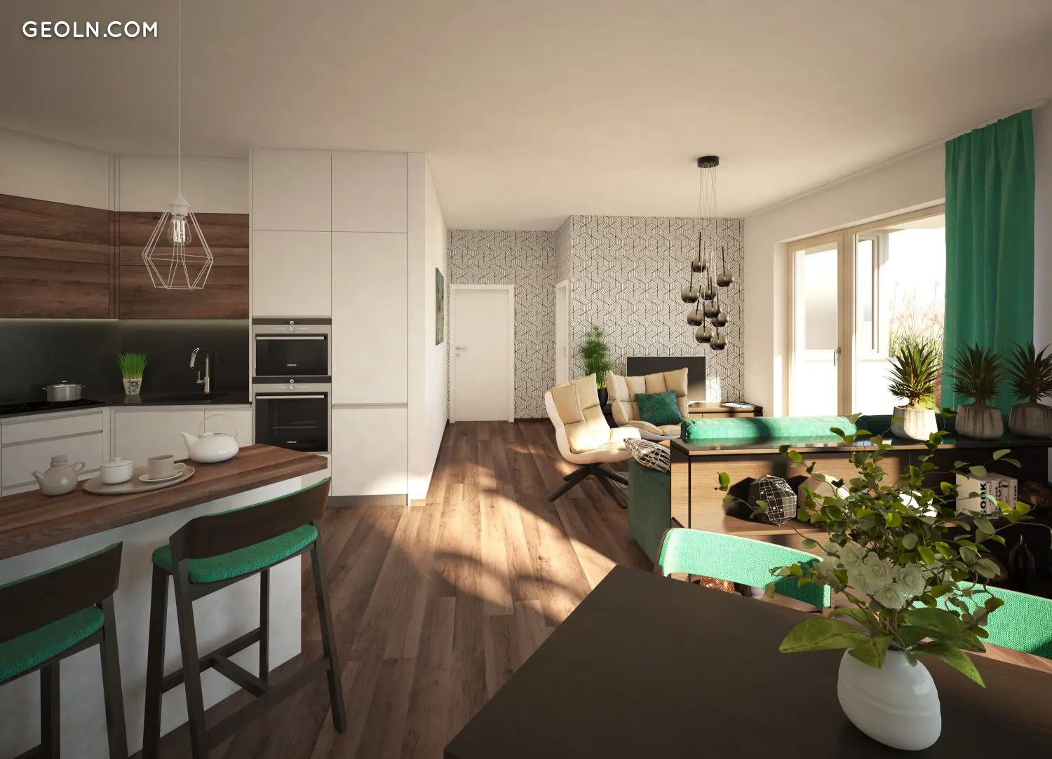 В межах двох окремих багатоквартирних будинків можна вибрати з 59 квартир площею від 52 м2 до 120 м2 у плануваннях 1 + kk до 4 + kk. Беззаперечною перевагою проекту є пропозиція квартир із щедрими садами, а також квартир з балконами та терасами. Звичайно, тут також є частково криті місця для паркування для мешканців та велобара.