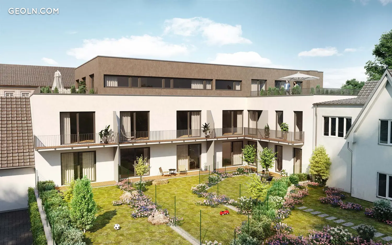 Більшість квартир з приватним садом або затишним балконом орієнтовані на тихий двір з видом на парк (Zámecký park). Якщо ж ви шукаєте більш просторе житло - зверніть увагу на квартири верхнього поверху, кожна з них має велику терасу з видом на околиці і пропонує своїм власникам максимальне усамітнення.