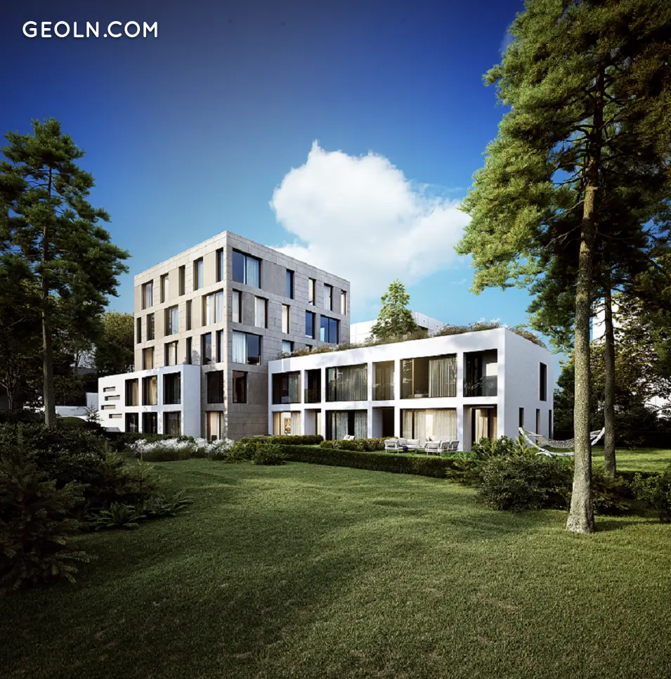 Будівля складається з двох додаткових частин. В основній частині є п'ять поверхів з десятьма квартирами і ліфтом, а друга частина являє собою двоповерховий тракт меншого розміру з трьома дуплексними квартирами 4 + кк. У підвалі є паркувальні місця і підвали. У кожній квартирі є сади площею до 155 м2. У будинку є власний сад.