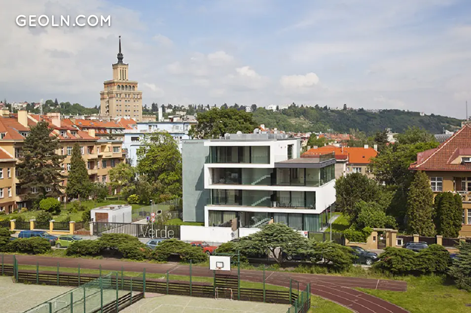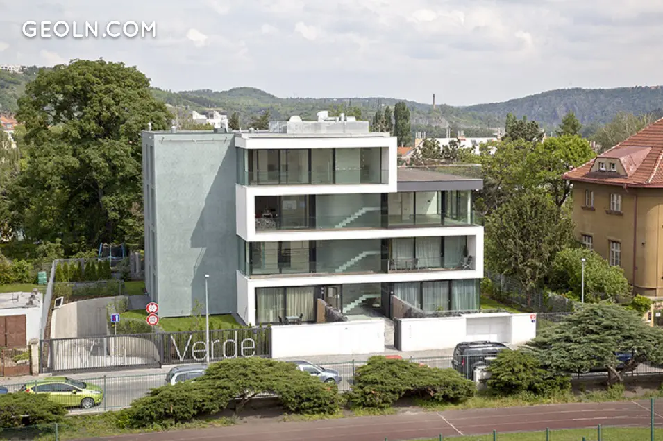 Малоквартирний будинок «Verde» - це сучасна житлова споруда, гармонійно вписана в існуючу малоповерхову забудову престижного празького району. Архітектурне рішення, що представляє собою два об'єднаних куба, було вибрано з урахуванням характеру навколишньої забудови, яку утворюють будинки в стилі модерн і функціоналізм.