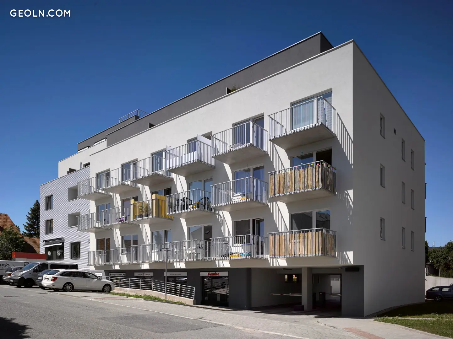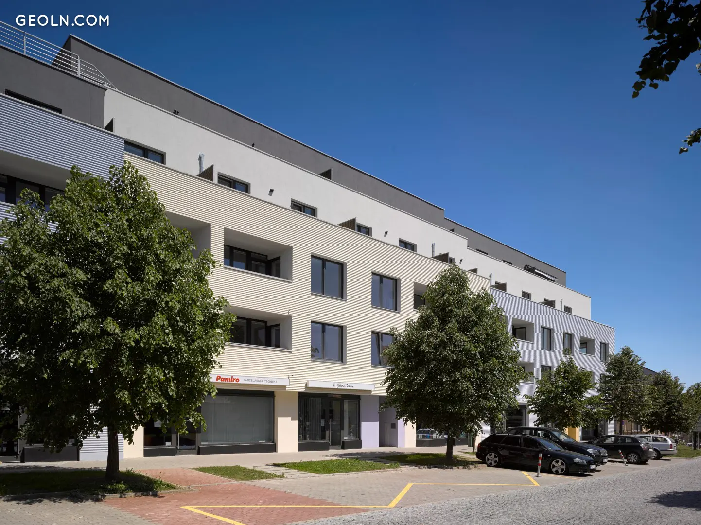 Все увінчано масивною спорудою замку з видом на долину річки Бобрава та потік Лічанський. У північно-східному куті площі ми спроектували класичний міський багатофункціональний будинок у сучасній архітектурній концепції, який перетворюється на площу та бічну вулицю з магазинами та квартирами на верхніх поверхах. У підвалі є підземні місця для паркування та льохи. Проект R PLACEO розділений на три окремі багатоквартирні будинки з власними входами на сходи та ліфти. Все вирішується стабільно без бар’єрів із сильним акцентом на деталях та функціональності.