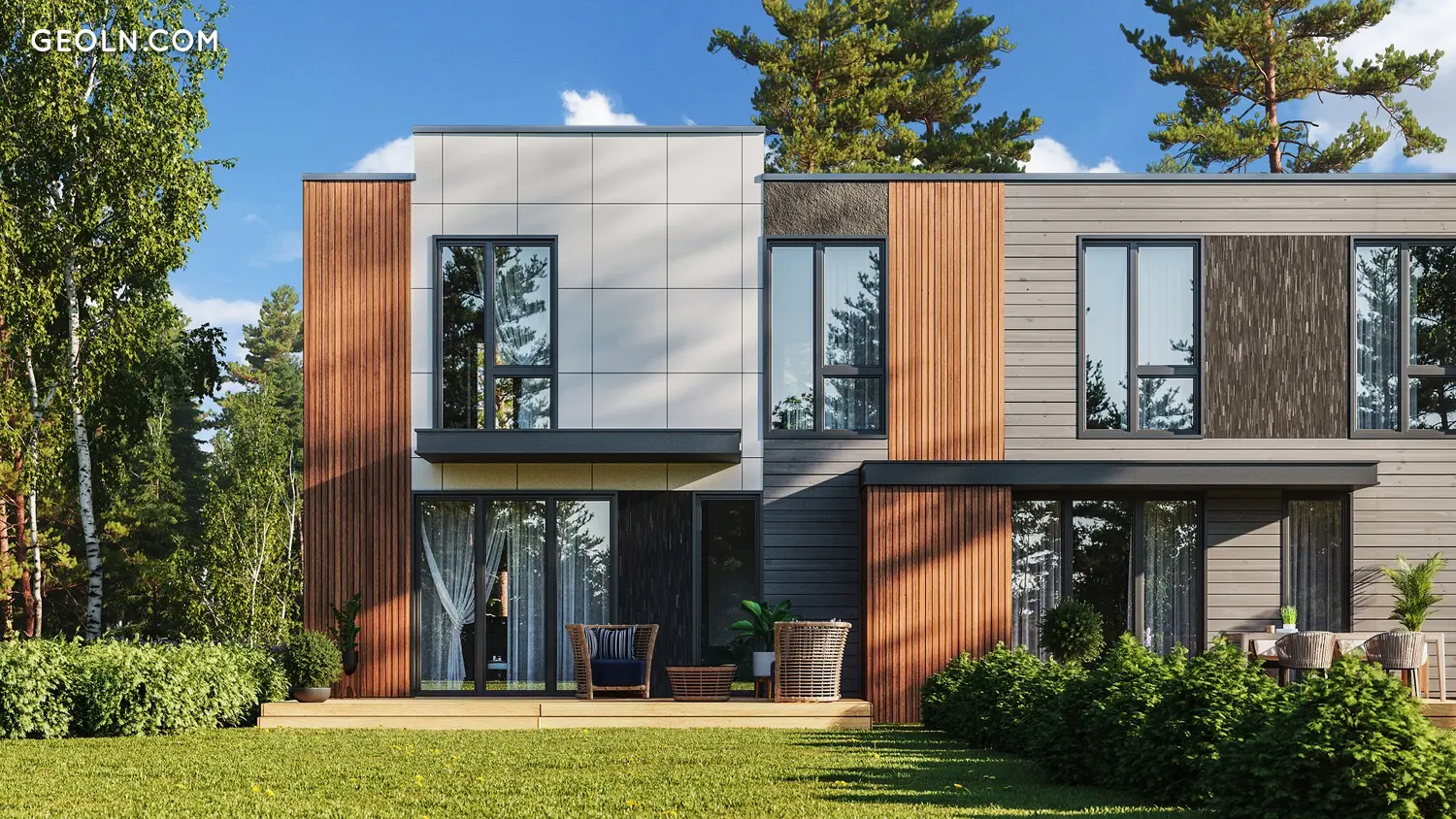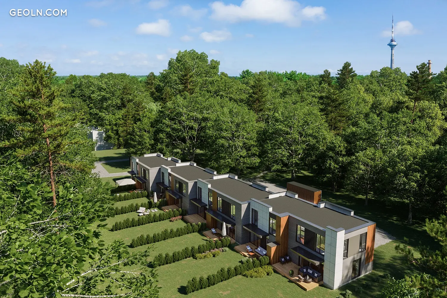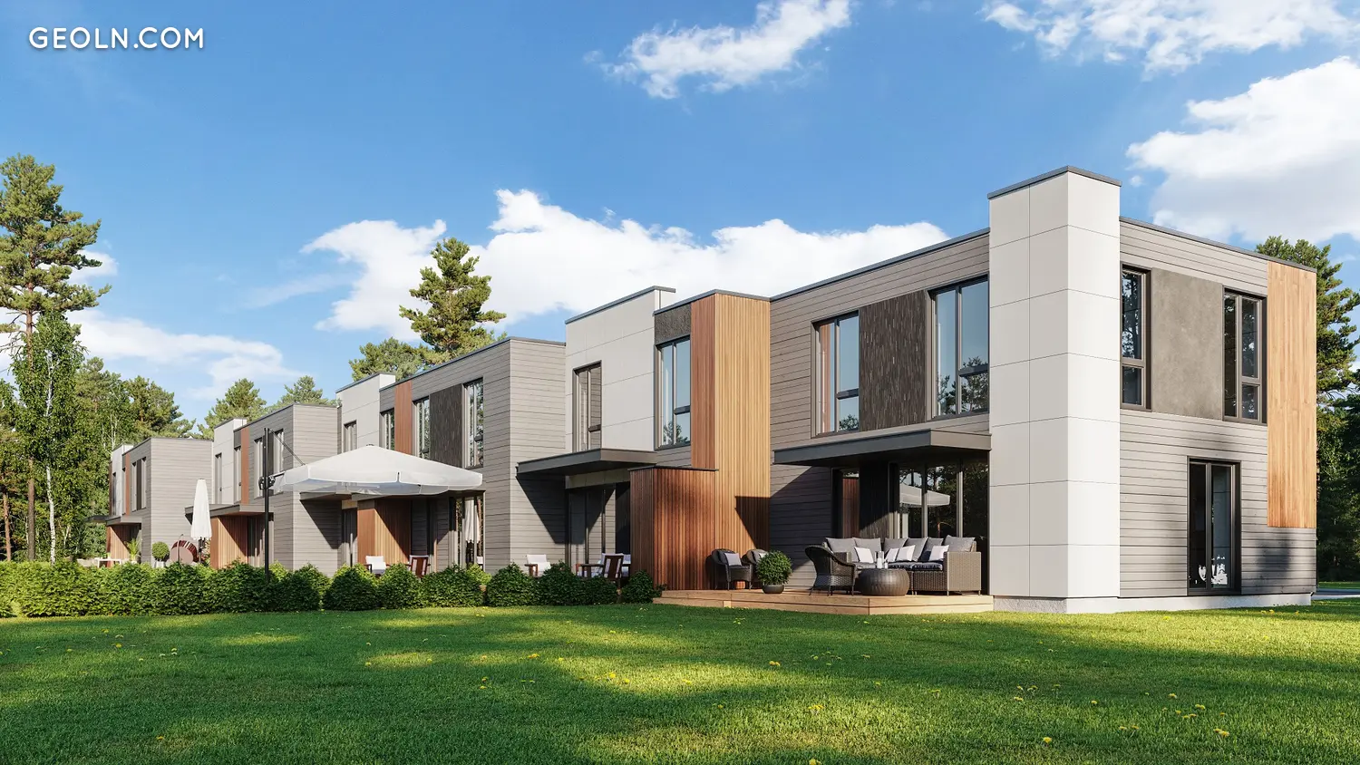 Розміри 5-кімнатних частин будинку коливаються від 135 до 142 кв. У всіх будинках є тераса, 2 комори, сауна, камін та якісна внутрішня обробка та матеріали. Кожна частина будинку має особистий дворик. Ігровий майданчик та зона для барбекю (зона відпочинку) також збагачують навколишнє середовище.