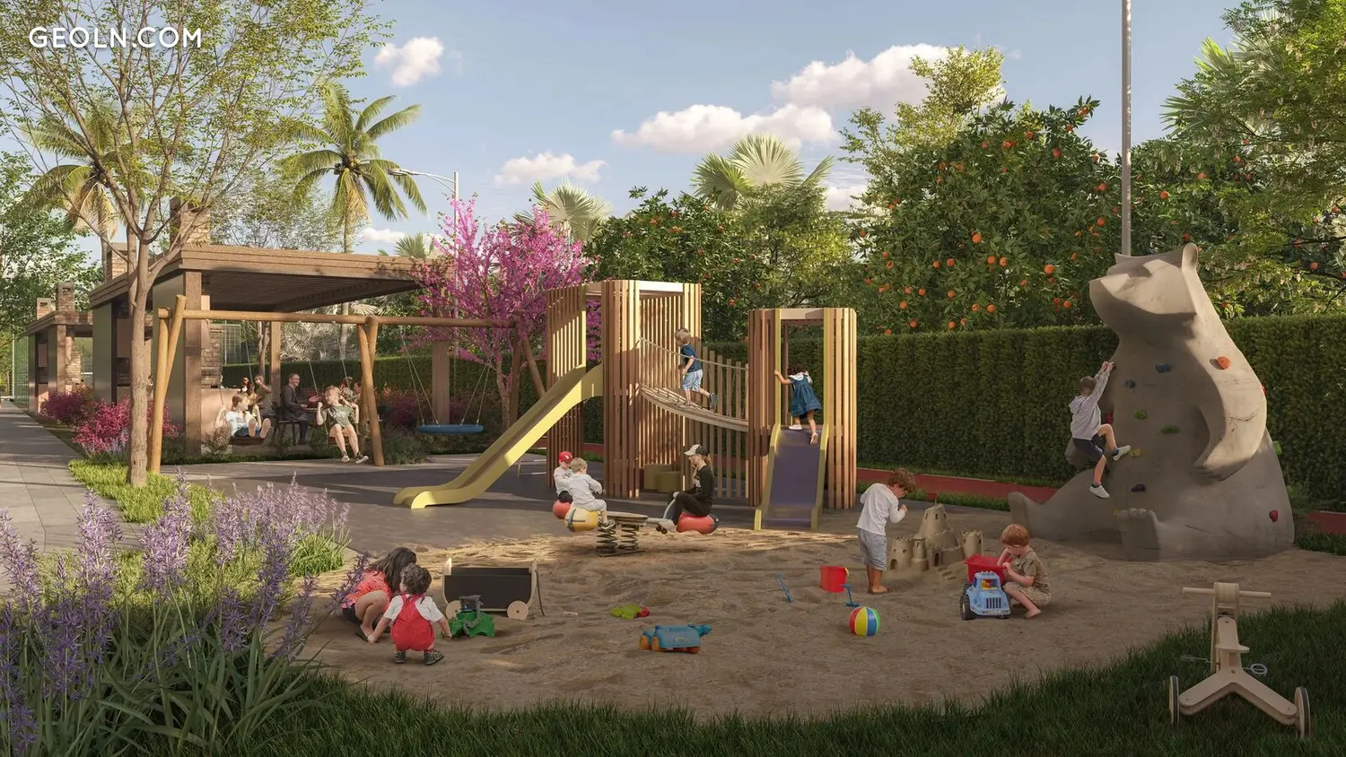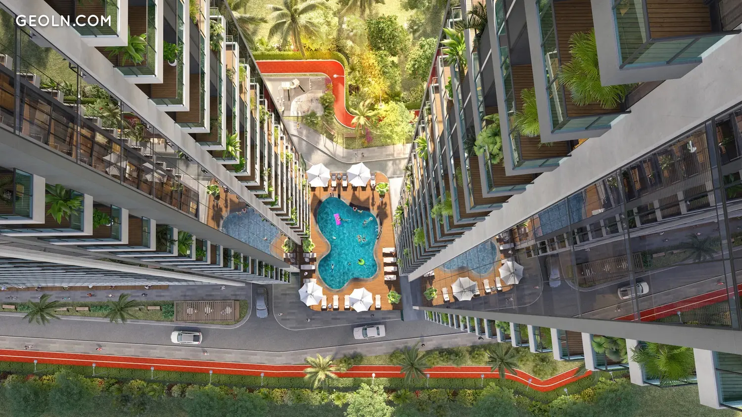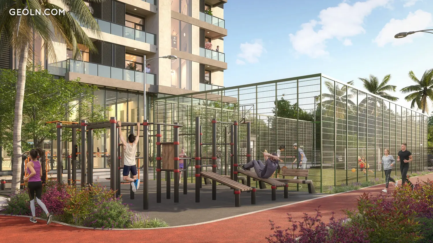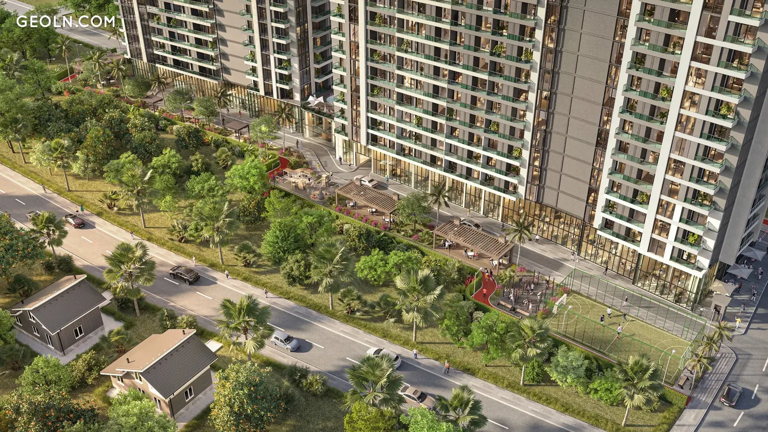 Приватна територія комплексу площею 6000 м2 забезпечує всю необхідну інфраструктуру, а також зони для відпочинку та спорту.