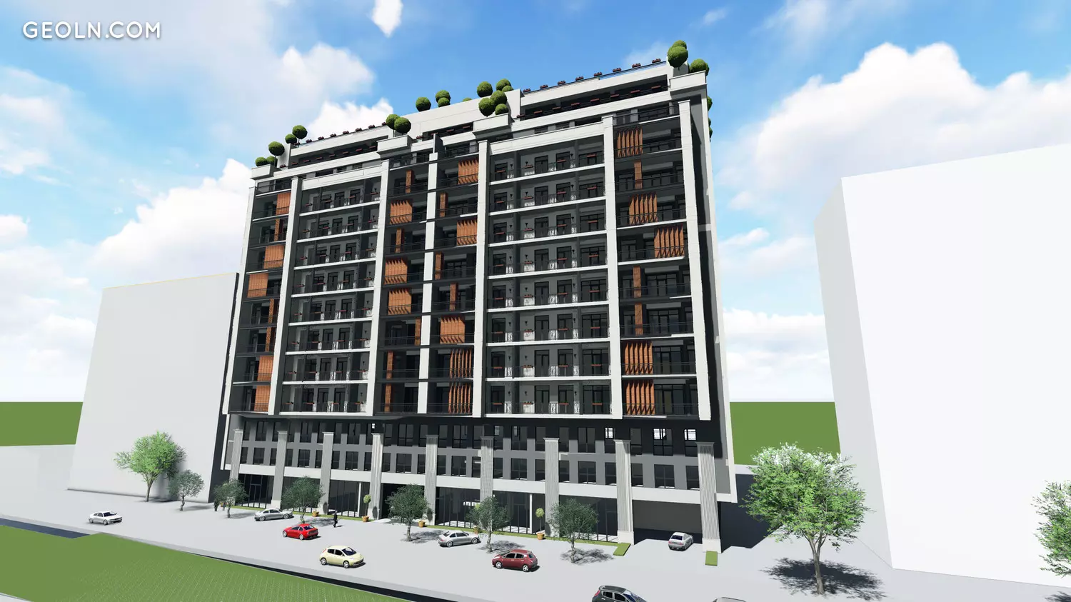 Житловий комплекс Sky Isani-унікальний по ряду характеристик проект, сучасний і навіть в чомусь інноваційний, але при цьому має в оформленні екстер'єрів мотиви ретро-стилю.