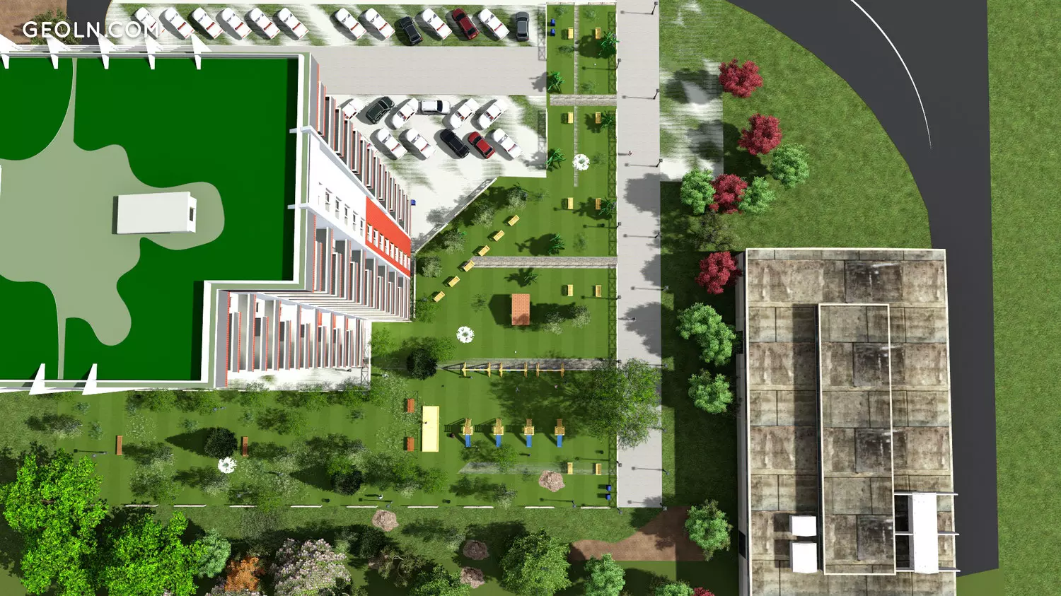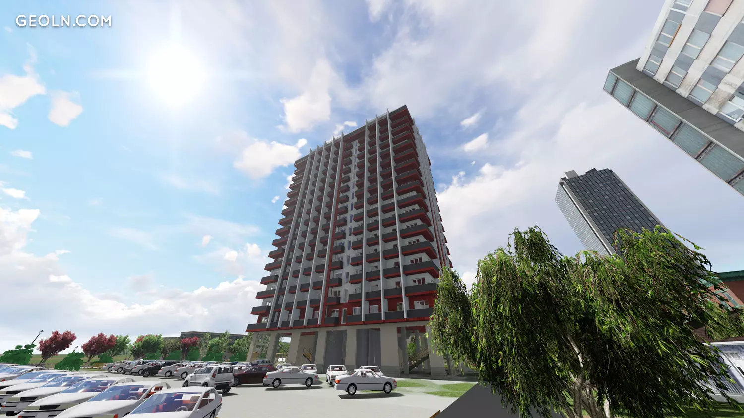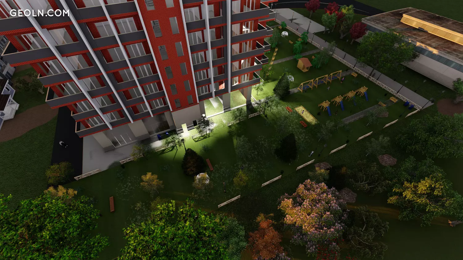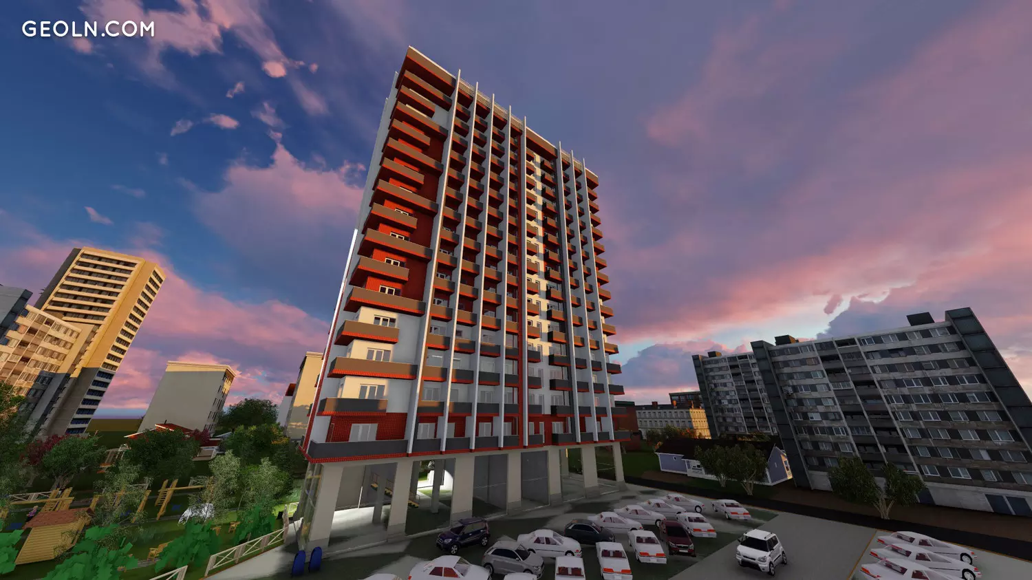 "Demax Digomi" - це 16-поверховий житловий комплекс, який має велике подвір’я, де знаходиться дитяча розважальна зона, будівля будується червоним кольором, цегла виготовляється англійською мовою, яка виробляє бренд "Stoneart"