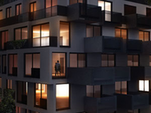Будівля змінної поверховості має дві секції висотою чотирнадцять і шістнадцять поверхів. Купити квартиру в новобудові можна на кожному поверсі, на верхніх же рівнях розташоване житло з балконами на всю довжину стіни, більше схожими на відкриті тераси.