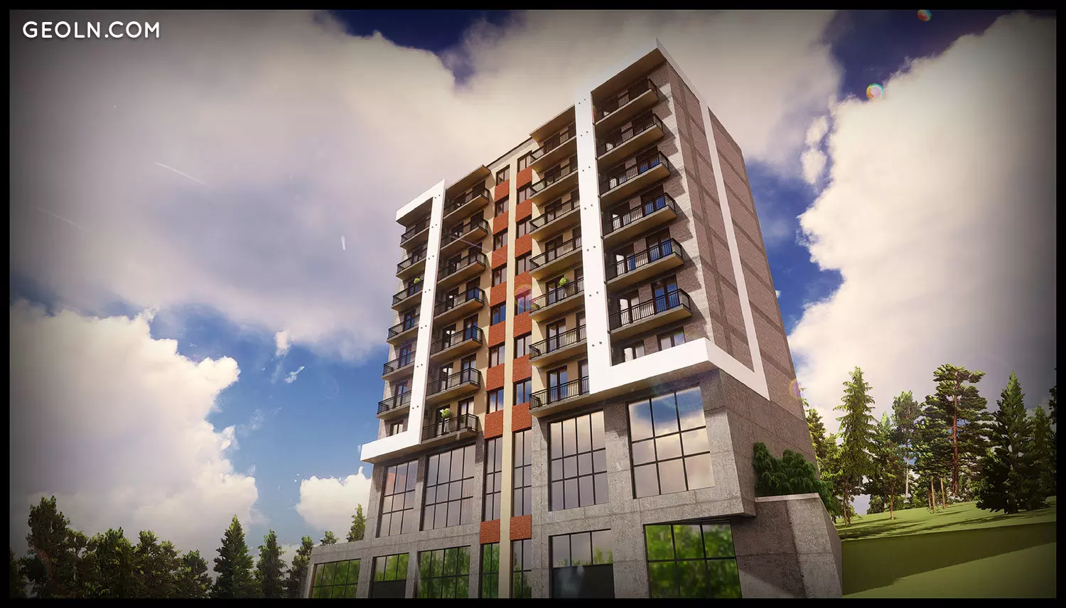 ЖК на Квачантірадзе 5 в Тбілісі налічує 9 поверхів, будується на ділянці з невеликим перепадом висот, що в деякій мірі відбивається на зовнішньому вигляді будинку. Біля будинку буде надійний фундамент, підвищеної міцності монолітний каркас, теплі стіни з блоків з поліпшеними показниками енергоефективності. Для декору фасадів планується використовувати червону цеглу, декоративні панелі білого і сірого кольорів.