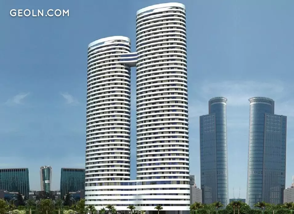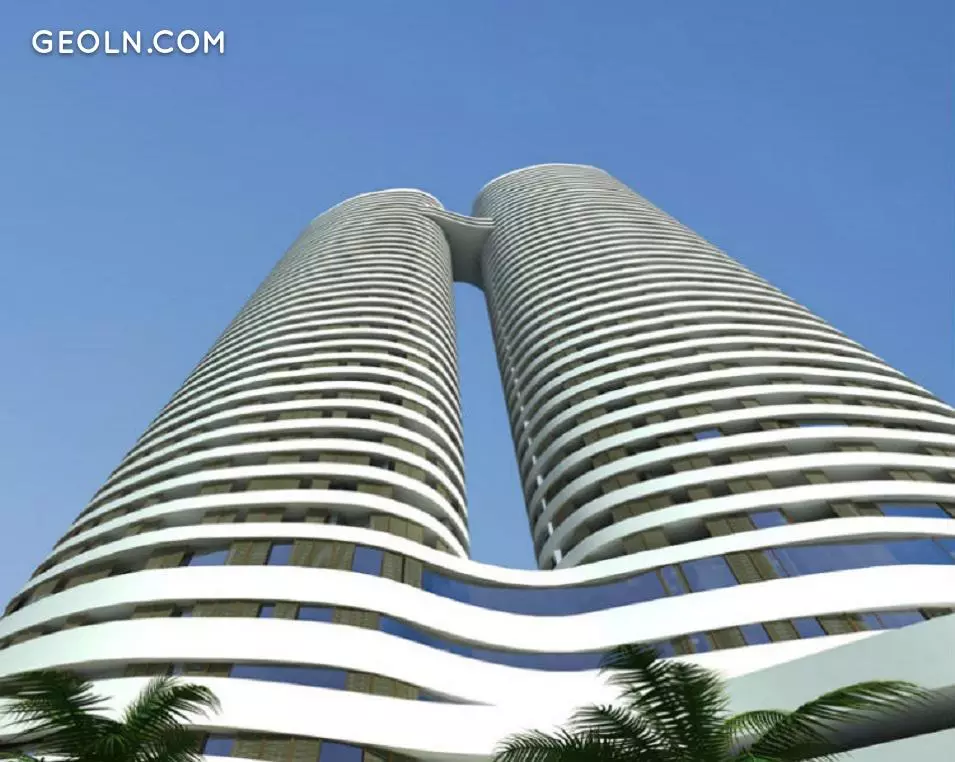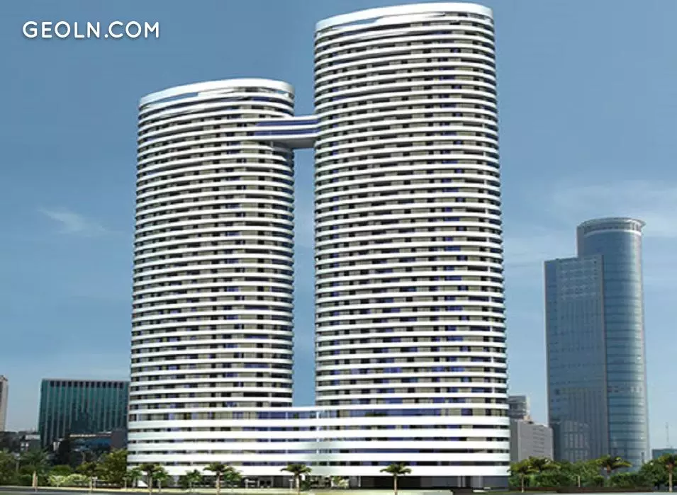 Пара 40- та 46-поверхових веж, з'єднаних унікальним мостом, з дивовижним архітектурним дизайном, із закругленими та футуристичними лініями.