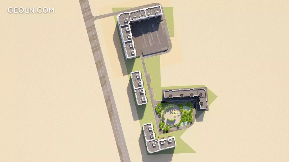 Прокладаються пішохідні доріжки, вкриті бруківкою, і проїзди для спецтранспорту, встановлюються вуличні світильники і висаджуються декоративні дерева.