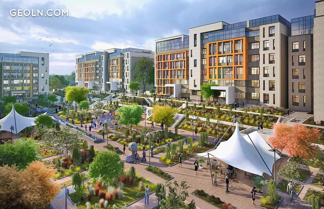 Автомобілів у дворах немає, адже для них в комплексі передбачений просторий підземний паркінг. У складі внутрішньої інфраструктури заплановано дитячий сад і фітнес-центр з басейном.