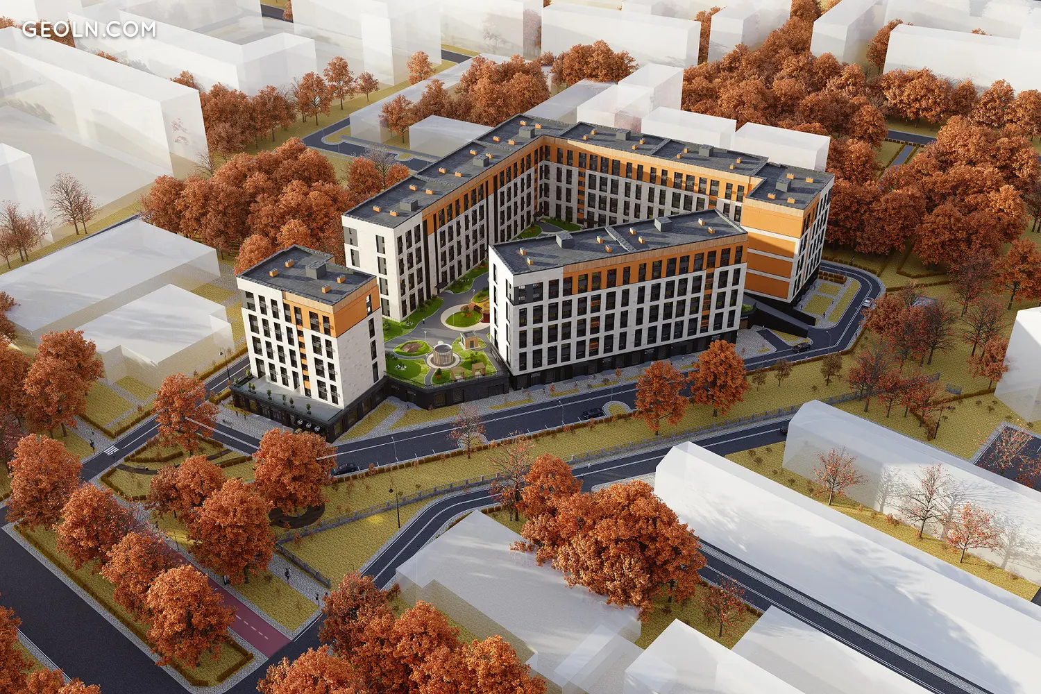 Територією комплексу прокладаються асфальтовані проїзди і пішохідні доріжки, встановлюються вуличні світильники. Виконується ландшафтне озеленення за авторським проектом - розбиваються квітники, висаджуються декоративні дерева і рослини.