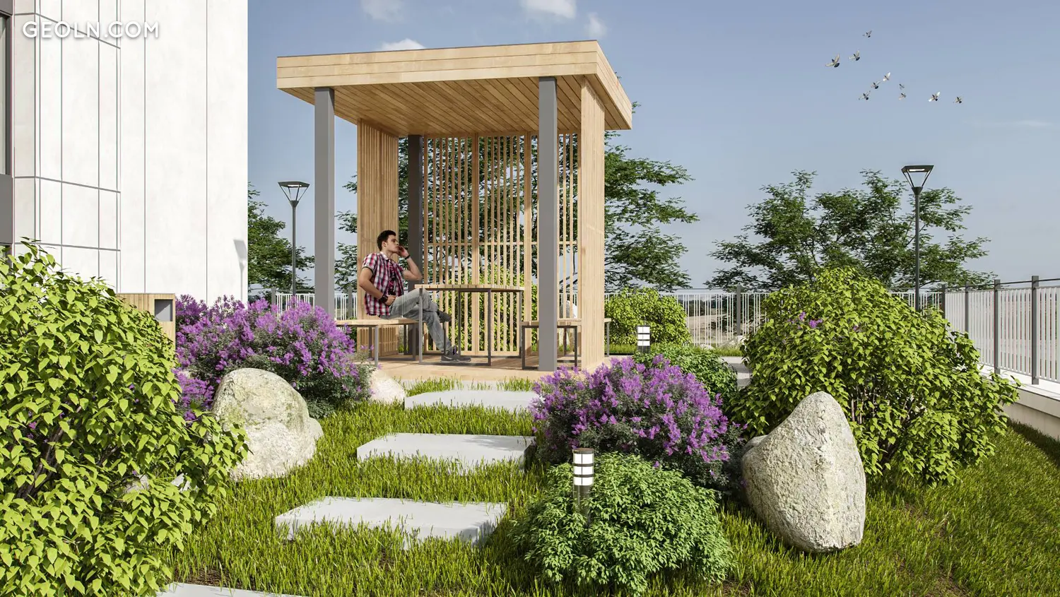облаштування зон відпочинку з альтанками та малими архітектурними формами.