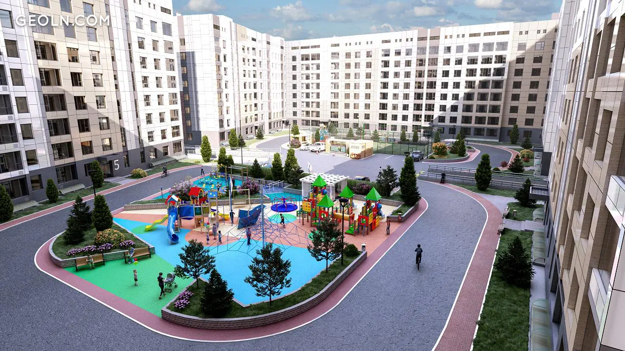 LCD View Park in Nur-Sultan შენდება ალმათის მხარეში, ჟუმეკენ ნაჟიმედენოვისა და A51 ქუჩების კუთხეში, პრეზიდენტის პარკიდან 3.5 კმ-ის დაშორებით.