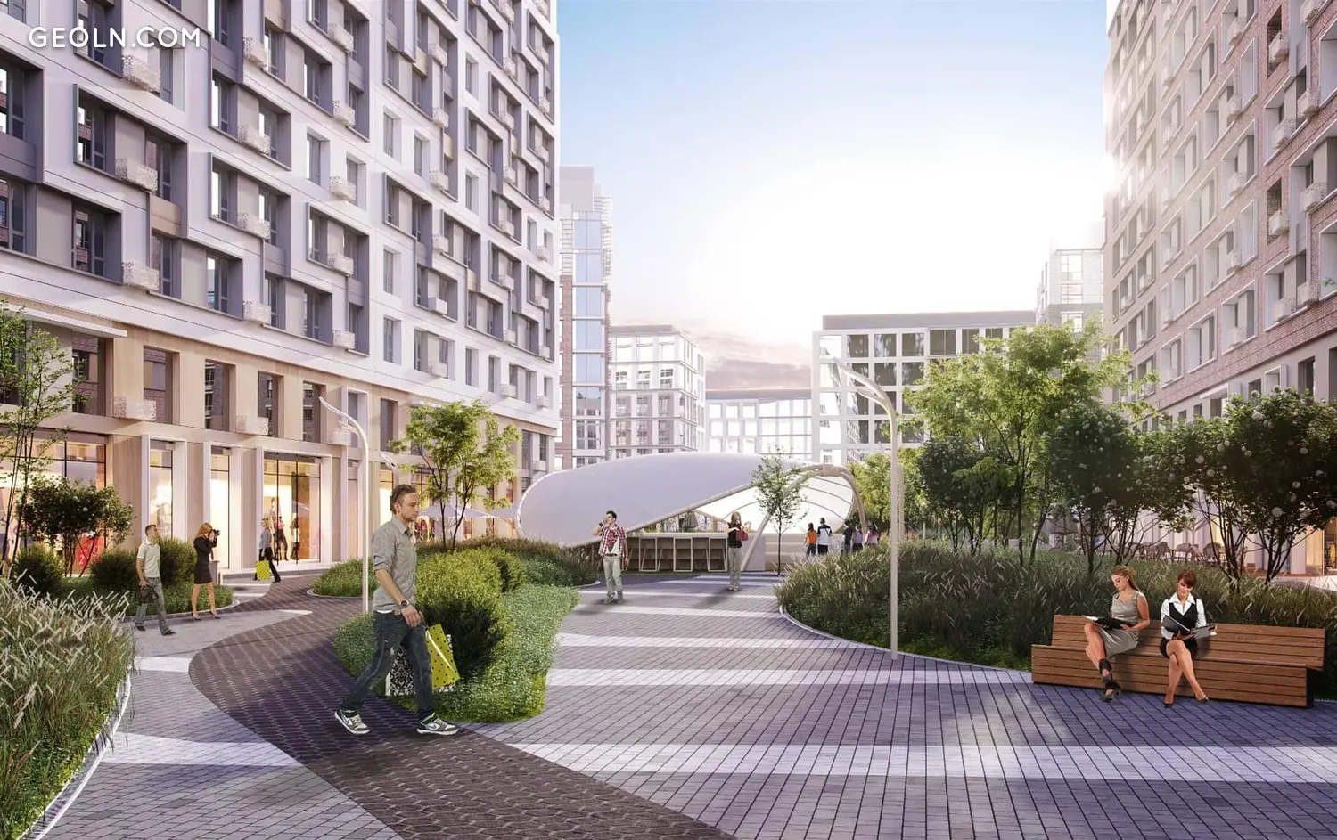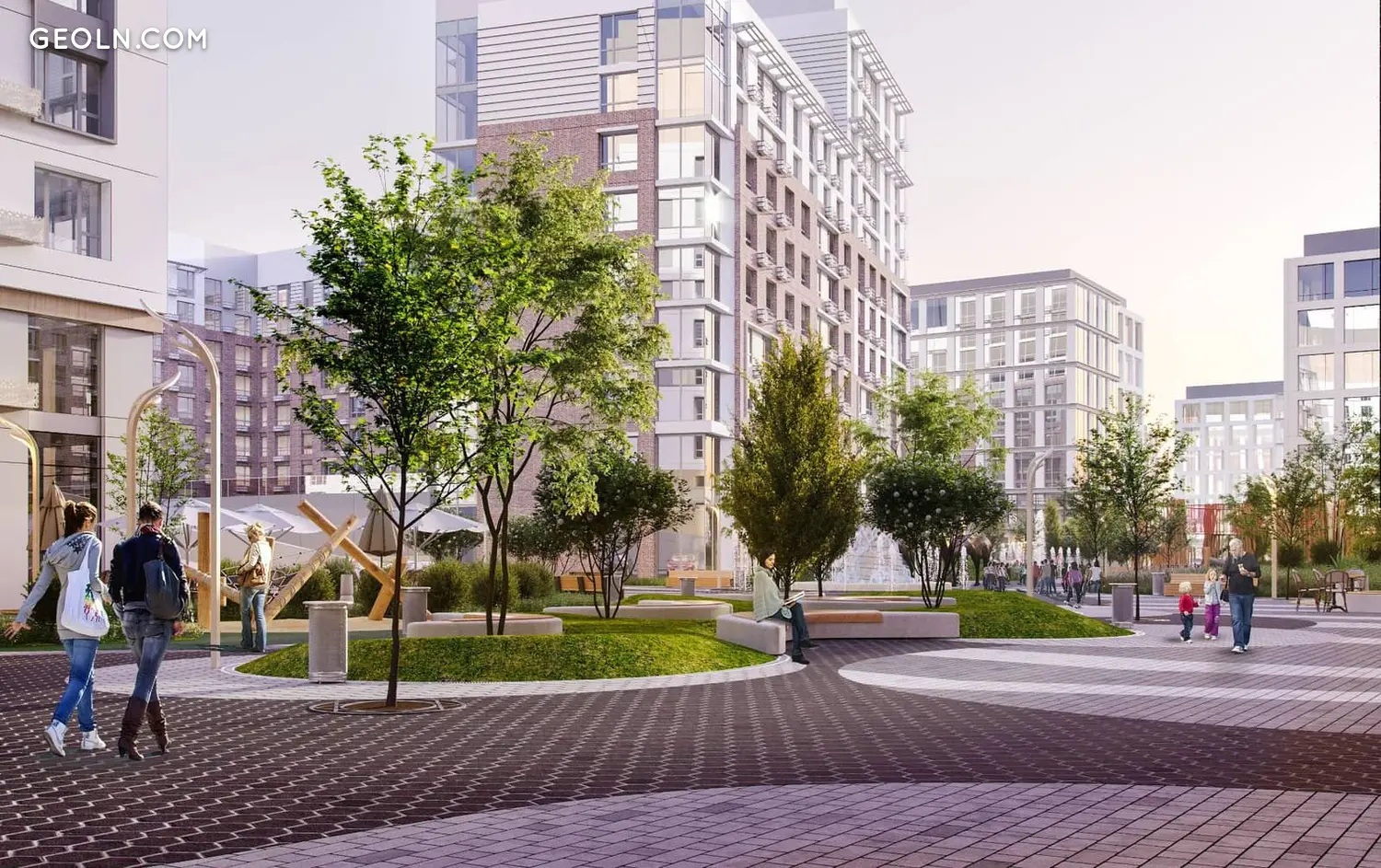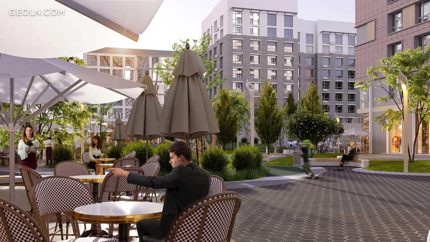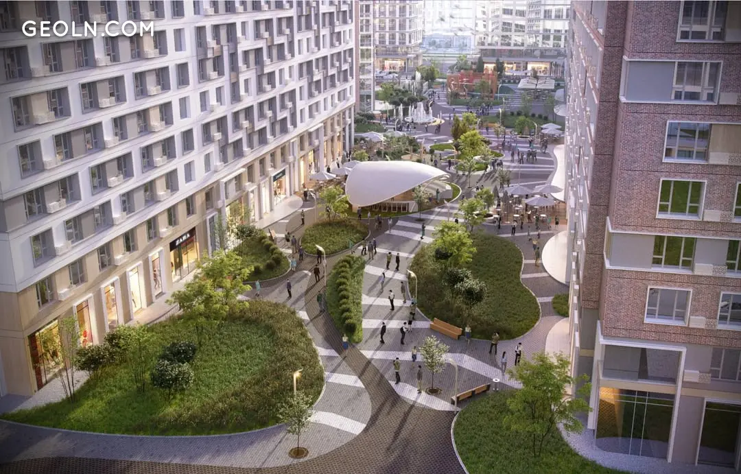 Серце ЖК «Гранд Туран» - пішохідний бульвар, уздовж якого встановлюються альтанки, лавочки та фонтани.