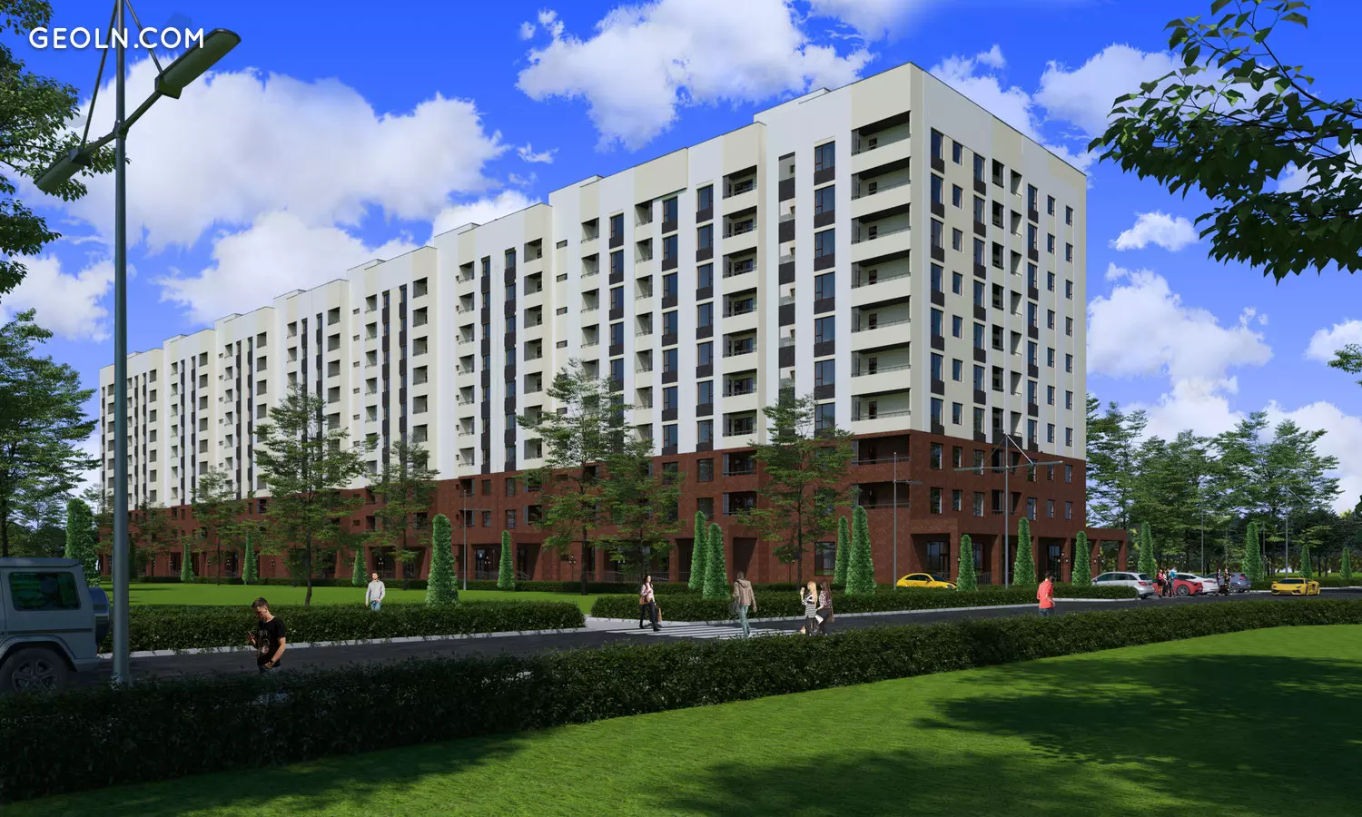 Житловий комплекс «Келечек» буде побудований на величезній території площею 1 га, 80% якої планується виділити під озеленення та створення комфортного простору для відпочинку на свіжому повітрі поруч з будинком.