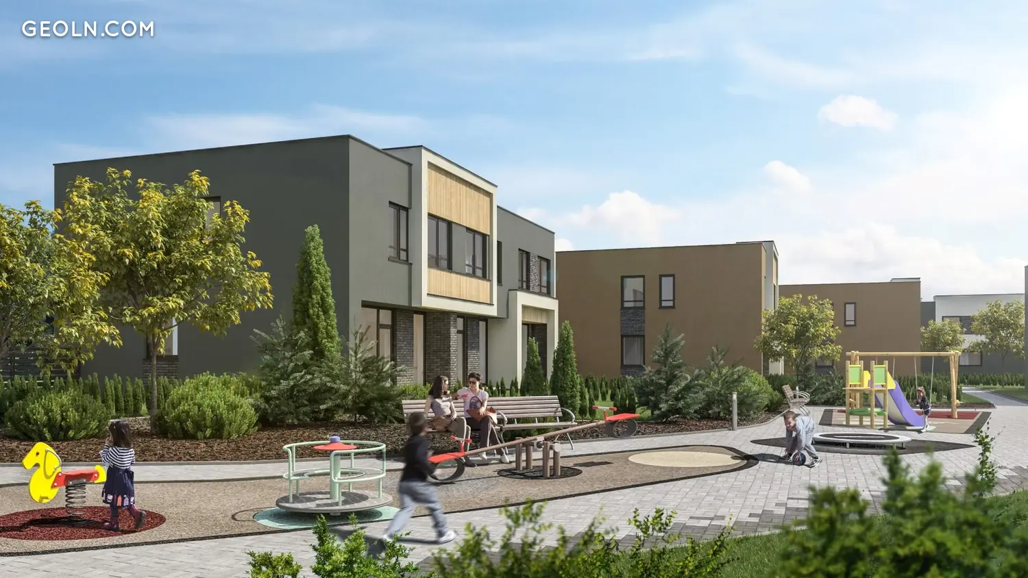 Для кожної сім’ї знайдеться простір для історій та прохолодного відпочинку на озері Гелуже. Для кожного будинку - після закритого вечора на приватному подвір'ї. 58 сімей насолоджуються спокоєм сосен. 97 -113 кв. в котеджах дасть відчуття простору 3м. стелі та вітрини.