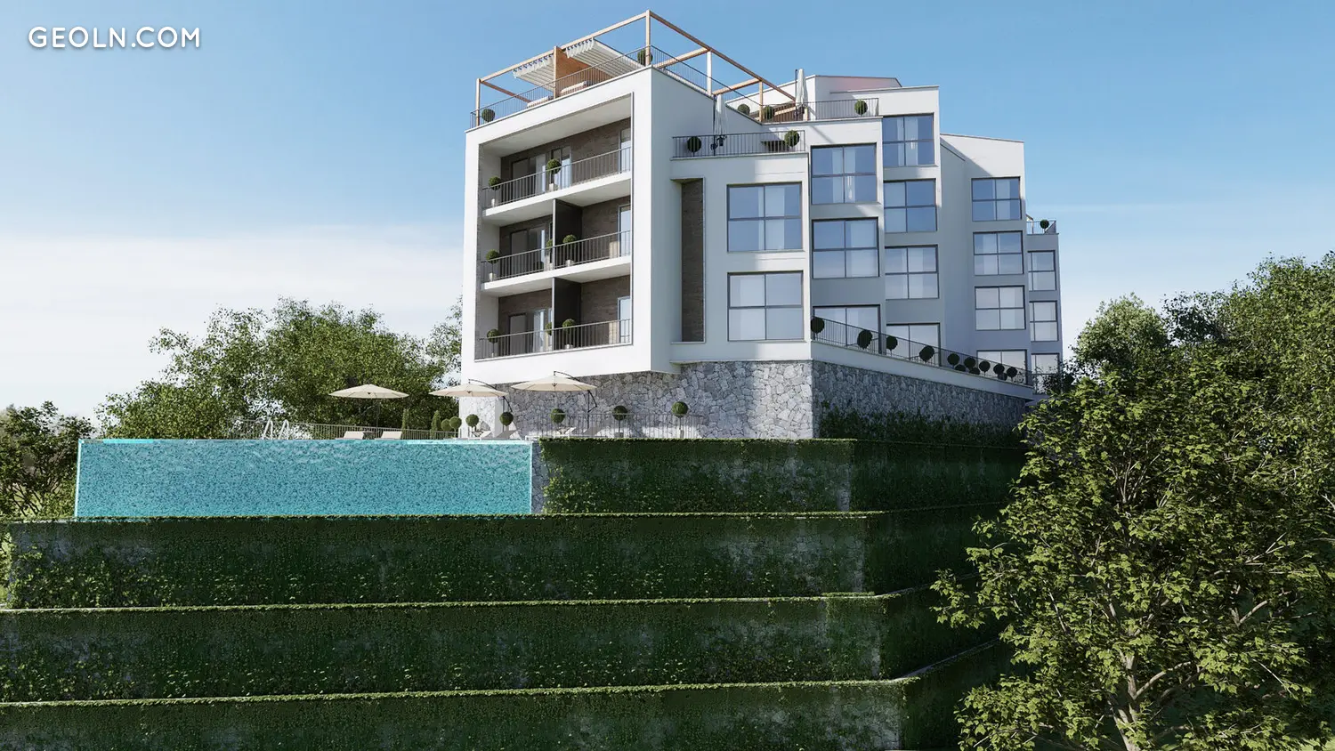 Готель Panorama Residences розташований у Мазіні, муніципалітет Тіват, з приголомшливим видом на затоку Тіват. ,Це всього 5 хвилин їзди від центру міста та набережної. У нашій нерухомості є 32 квартири різної конфігурації на 4 поверхах, підземний паркінг на 32 місця та складські приміщення; впорядкований двір, зовнішня автостоянка, басейн та SPA. У будинку є центральна вода, каналізація та інтернет. До нього веде асфальтована дорога.