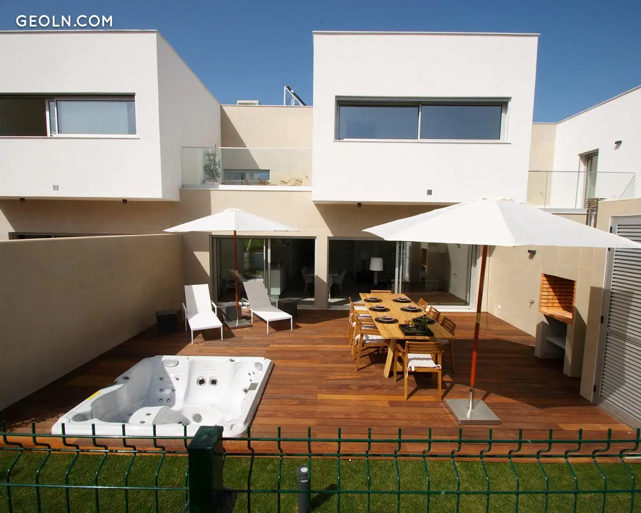 Сучасні будинки з великою кількістю світла, широкими балконами з величезними отворами, терасами та окремими джакузі. Ці вілли з трьома спальнями, дві з яких мають окрему ванну кімнату, три ванні кімнати, велика вітальня з інтегрованою кухнею, екзотична дерев’яна тераса, барбекю, сад та окреме місце для паркування з розеткою для електромобіля, пропонують усі зручності будинку.
