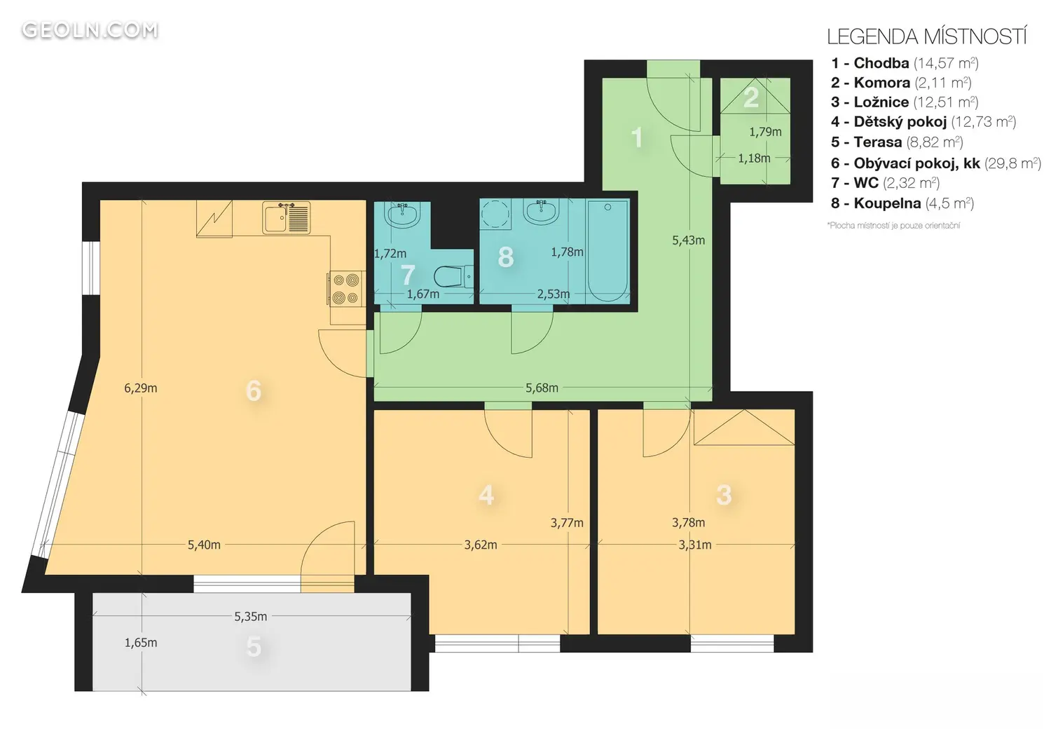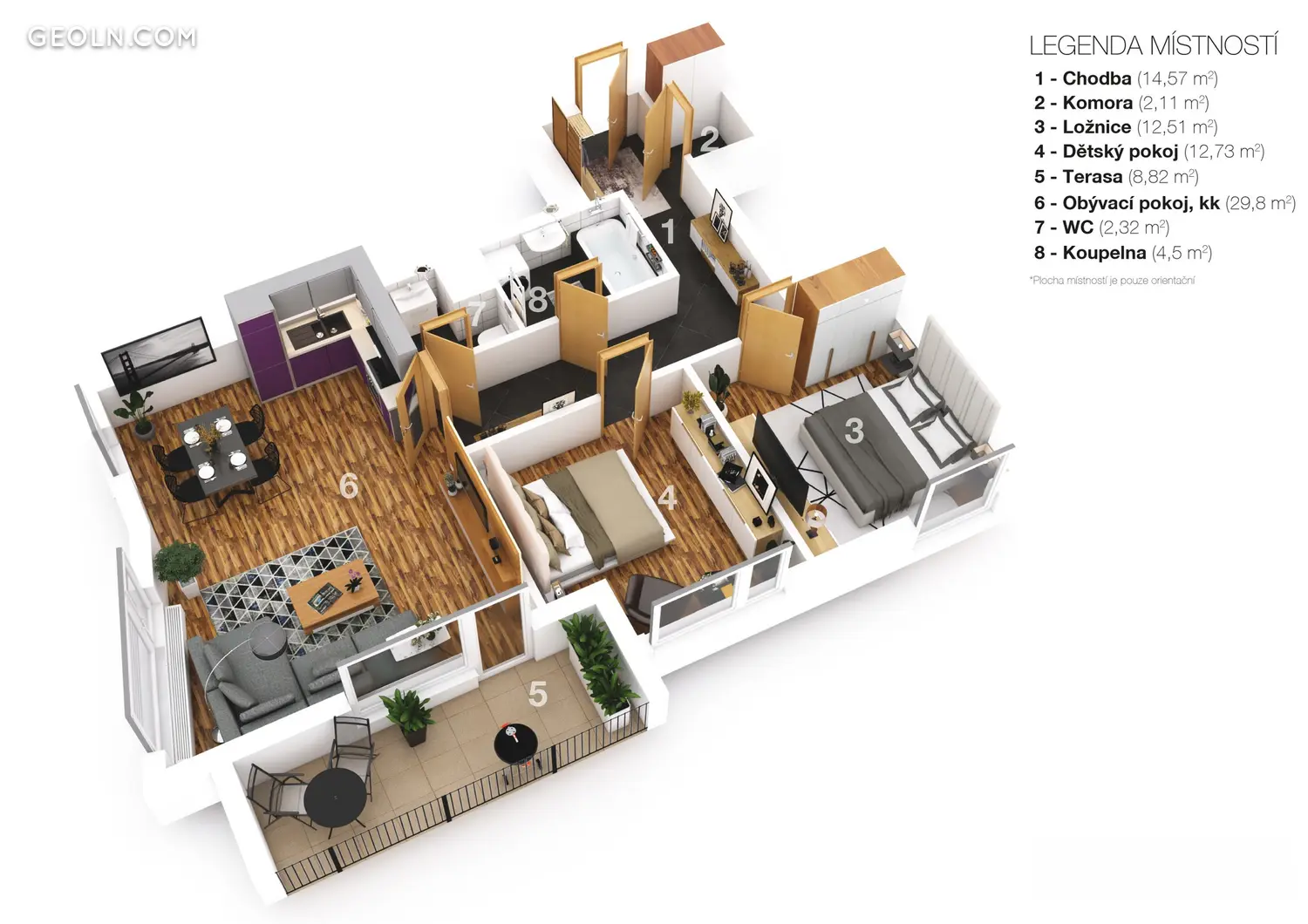 С 1-го этажа, подземного паркинга, лифт для людей на инвалидных колясках поднимет вас прямо на ваш этаж. Квартира имеет идеальную ориентацию на юго-запад. Впечатляющая квартира общей площадью 88 м² в новосозданном жилом районе Малый Гай, расположенном на окраине Штербоголов и Дольных Мечолупов. Транспорт и общественный транспорт от резиденции Malý Háj расположен не более чем в трех минутах ходьбы от автобусной остановки Kutnohorská, в десяти минутах от станции метро A - Depo Hostivař и торгового центра Fashion Arena.