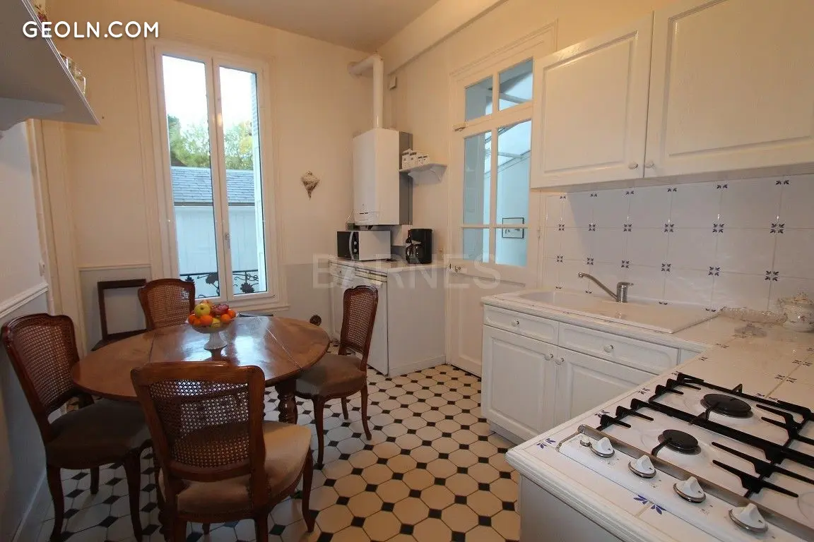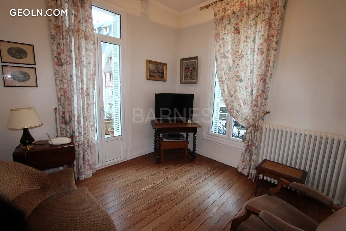 Вилла 1910 года постройки расположена в 250 метрах от площади Морни в Довиле. На вилле: большая входная группа, отдельная кухня, столовая с камином, двойная гостиная, гостевой санузел. На втором этаже: три спальни (одна из них – с выходом на красивую террасу), ванная. На третьем этаже: две спальни, ванная. Также на участке – гараж с отдельным входом в дом, прачечная, погреб. Дом удачно расположен возле магазинов и ж/д станции.