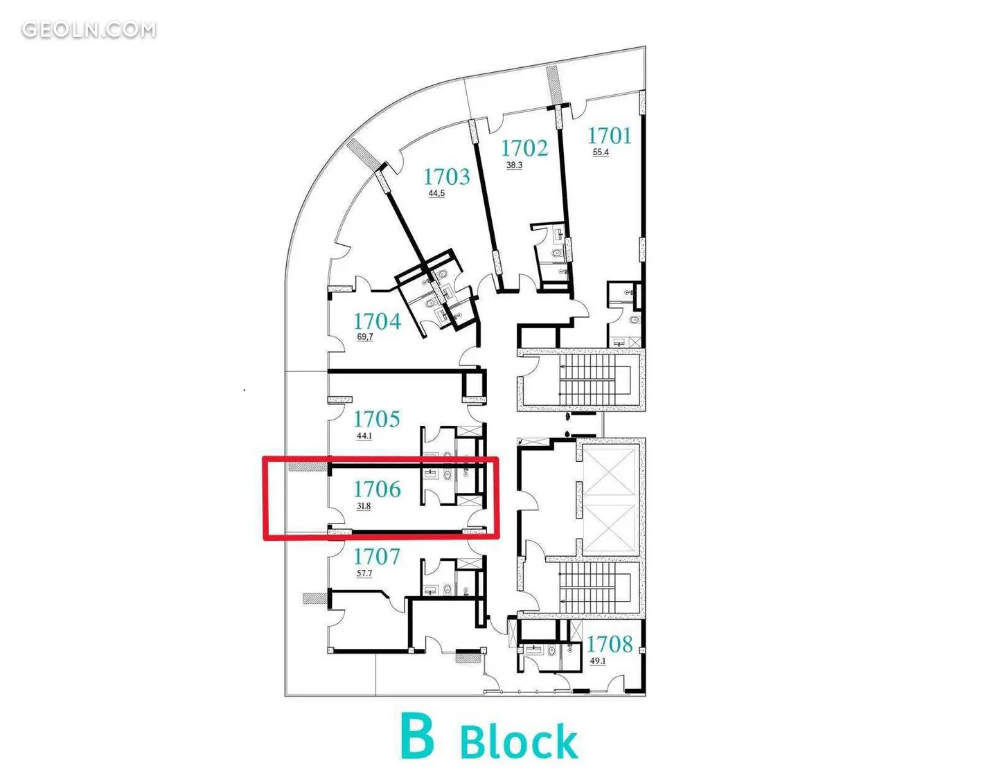 - Поверх: 17-й поверх 18-поверхового будинку (Блок B)