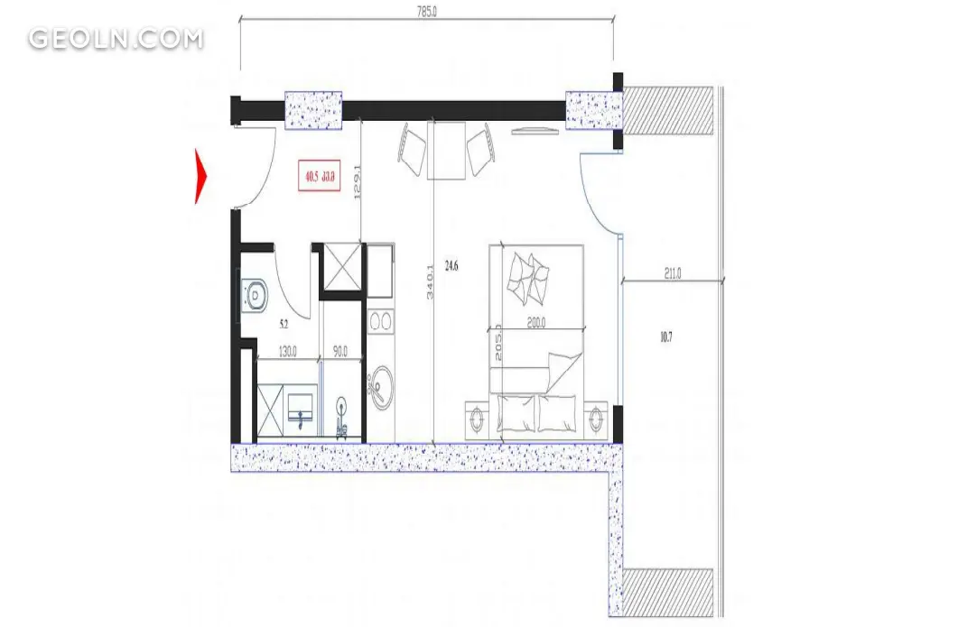• Загальна площа: 51.2 м² (40.5 м² житлова + 10.7 м² балкон)