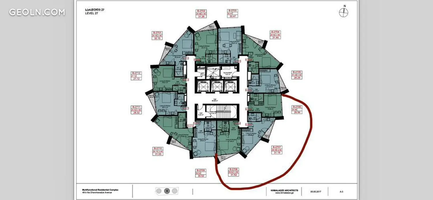 Продається 1-кімнатна квартира в Ваке на проспекті Чавчавадзе, в будинку, що будується Альянс, загальна площа 26.94 кв.м, 27-й поверх, квартира здається в стані білої коробки