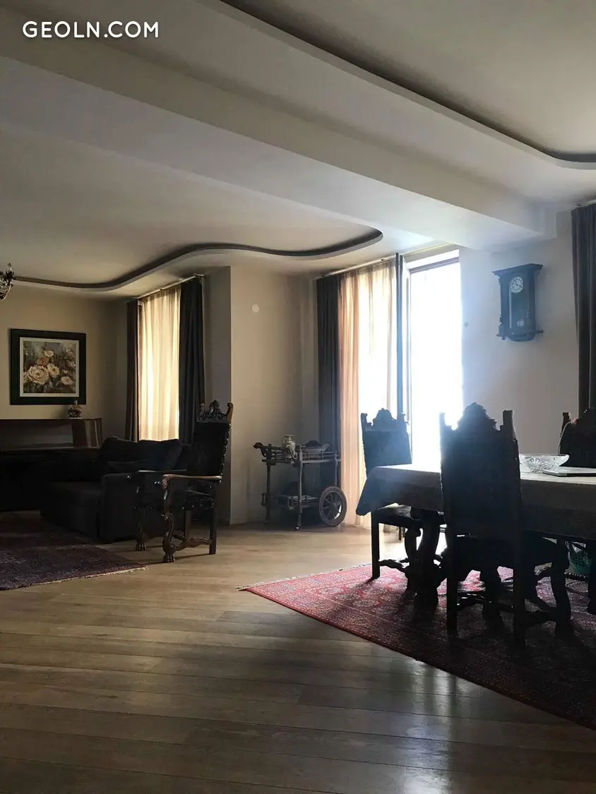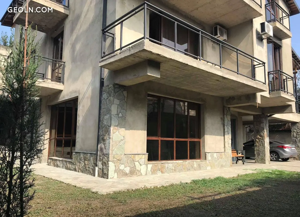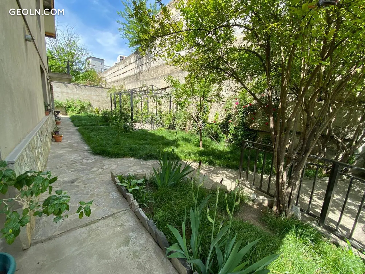 650 м², двор 730 м², с капитальным забором 4 метра, фруктовые деревья, вентиляторы, мангал. Двор вымощен камнями Ананур и Ничбис.