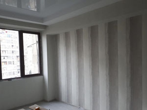 Второй этаж и лестничная клетка были полностью отремонтированы. На остальной площади предстоит только малярные работы, потолок оклеен гипсокартоном.